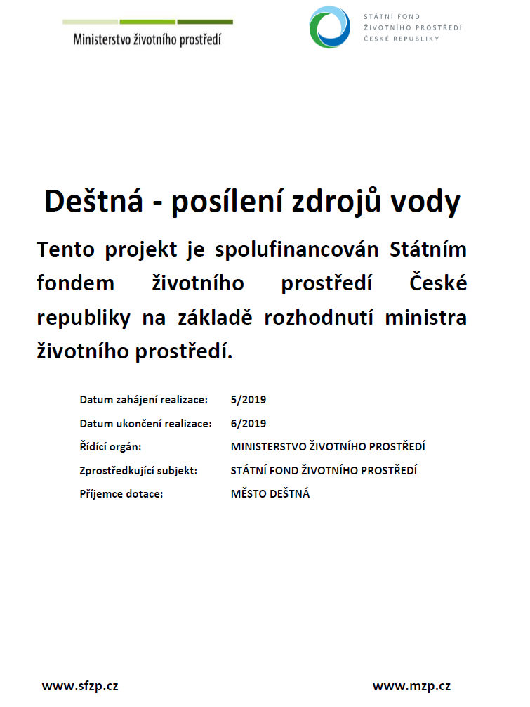 Je vytvořen průzkumný hydrogeologický vrt pro posílení zdrojů pitné vody v Deštné. Projekt je podpořen z Národního programu Životního prostředí.