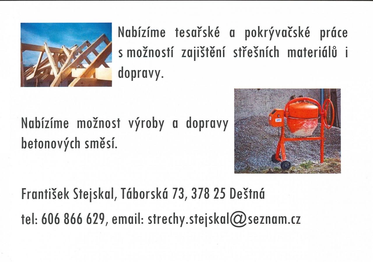 František Stejskal - tesařské a pokrývačské práce, výroba betonových směsí