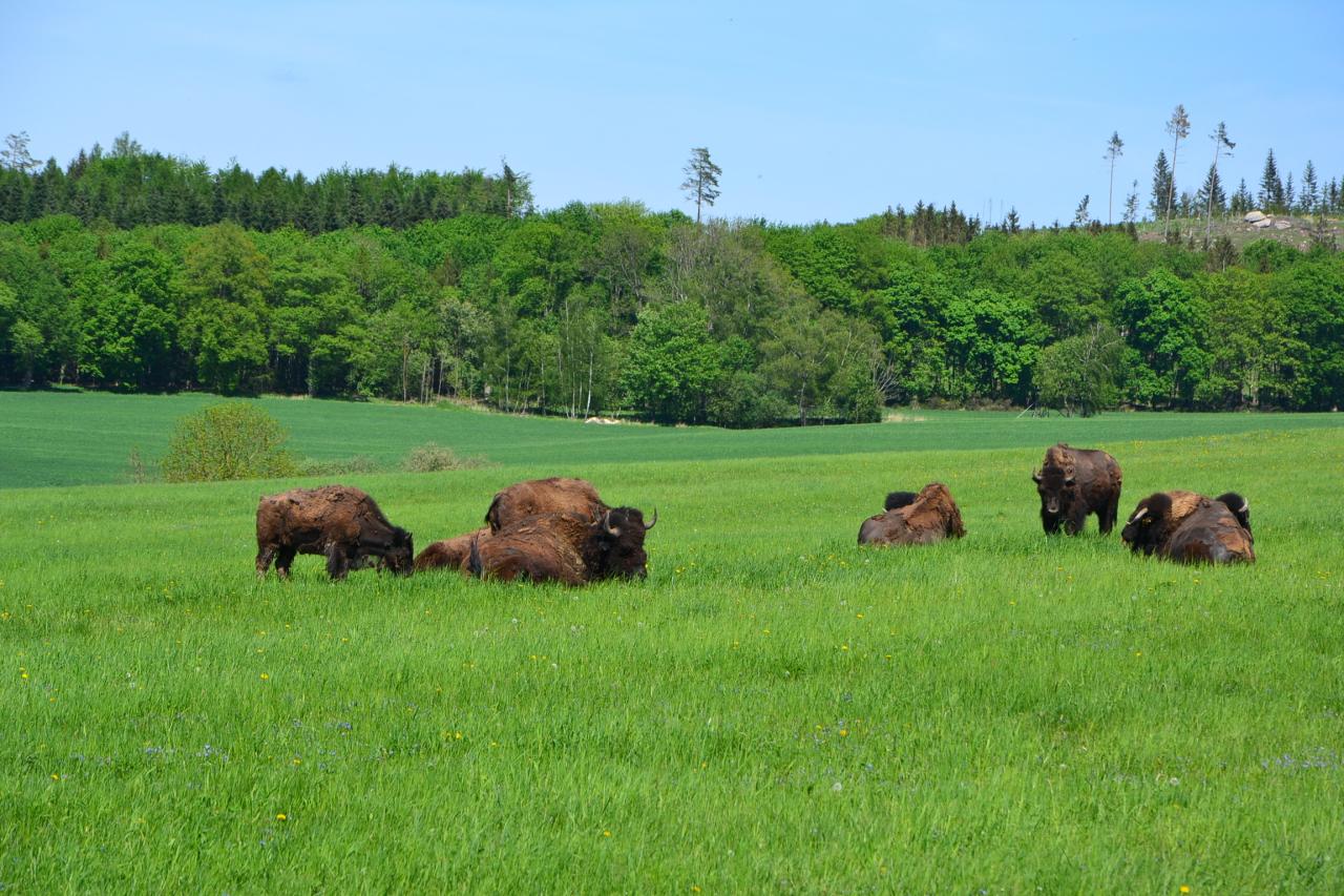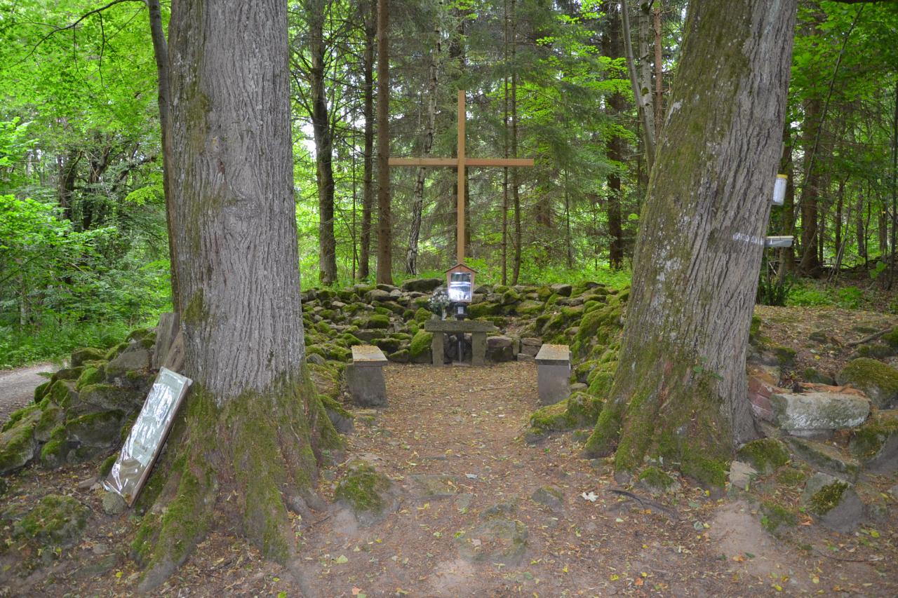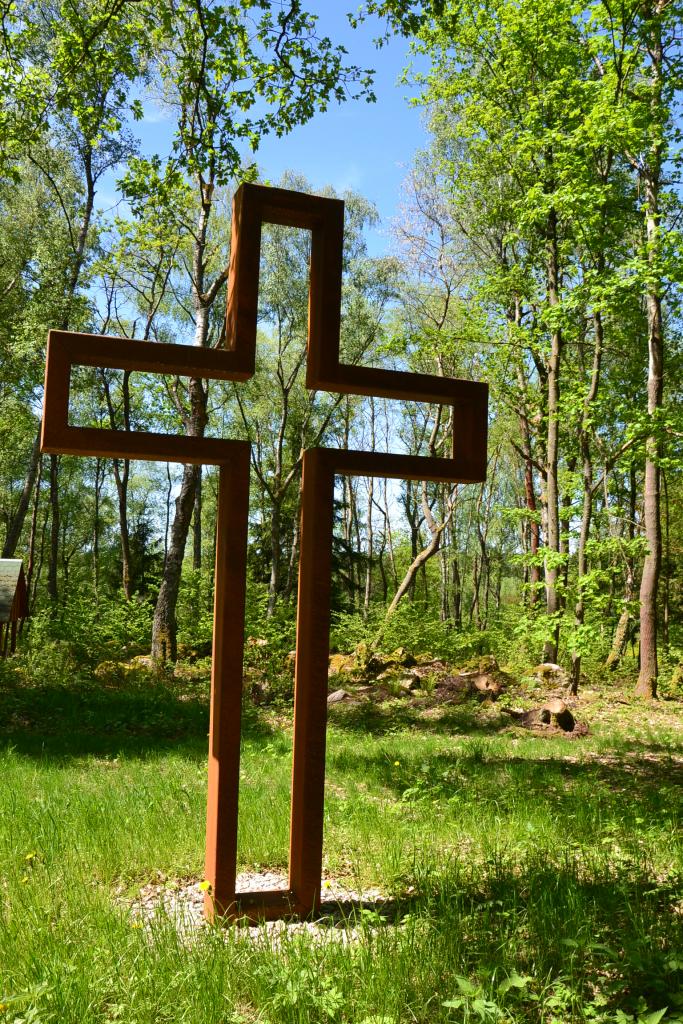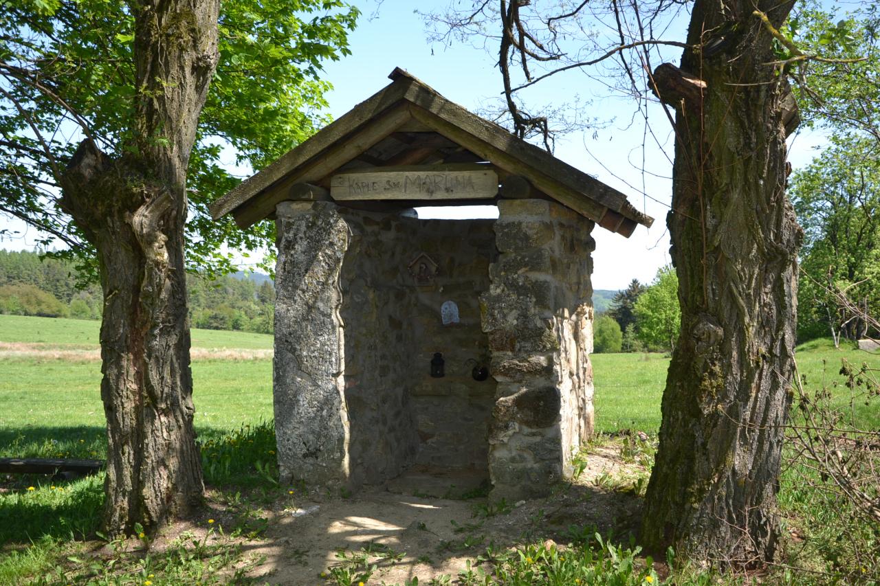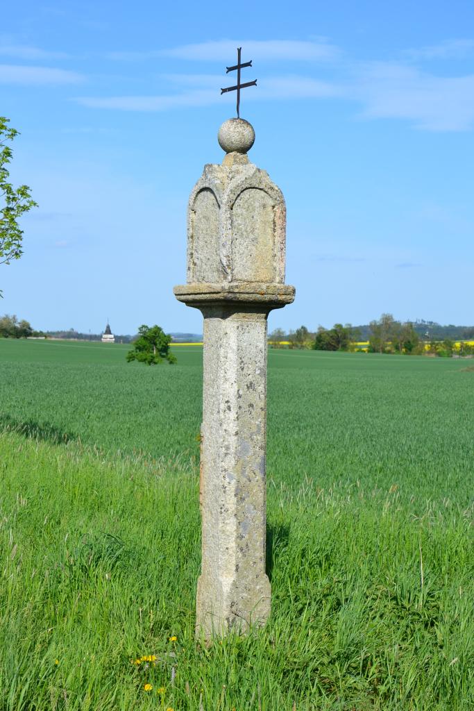 Dvě malinké vesničky Návary a Veclov představují po dlouhé době kousek civilizace. Stojí zde vesměs rekreační objekty. Na rekreačku je přestavěná i bývalá kaple. U Veclova je rozlehlá bizoní farma, což donutí člověka zastavit a chvíli se dívat na obrovská majestátní zvířata a mezi nimi se pohybující nemotorná mláďata. A už bych byl skoro ve Starém Městě pod Landštejnem, ale to jsem již navštívil dříve, takže městu jsem se vyhnul a jel přes bývalou obec Dětříš. Zde byl na mapě asi 150 m od cesty značený křížek, který dosud nikdo nevyfotil, takže jsem odložil kolo a prodíral se houštím, cestička žádná. A skutečně mezi kopřivami a bezovými keři, které jsem musel trochu odlámat, jsem ho našel a byl to silný zážitek. Z vesničky se 140 obyvateli se zachoval jen tento křížek, z asi 24 domů, které zde stály, se nezachovalo vůbec nic. Možná se kříže nebojí jen čert, ale zalekli se ho tehdy i komunisté.