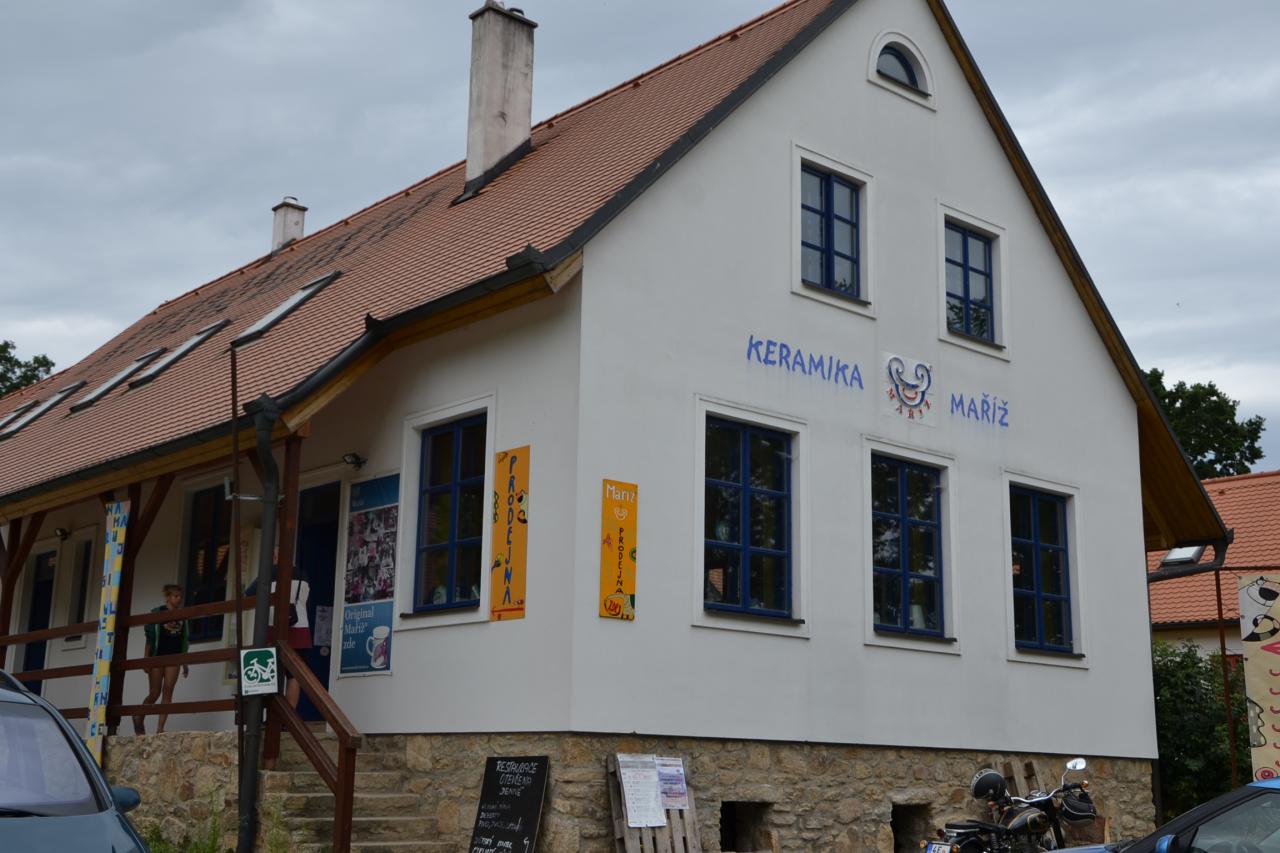 Potom zase stádo bizonů a dál cestou kolem rakouské hranice, bílé hraniční patníky jsou na dosah, až k jednomu většímu trojbokému kameni, označenému z jednotlivých stran „Č“, „M“ a „Ö“, tedy hranice mezi Čechy, Moravou a Rakouskem, místo nazývané Trojmezí. A následuje dlouhý sjezd až do Maříže. Zde stojí za pozornost zřícenina kdysi rozlehlého zámku, ze které již moc nezbylo, jelikož zdivo posloužilo jako stavební materiál řadě místních domů. U zámku je parčík s kašnou, studnou a sochou Malého Bogenbergu, tedy jakéhosi kostelíka v německém městě Bogen, jehož obyvatelé tuto maketu sem věnovali v roce 2012. Navazuje krásná modřínová alej. Maříž je dále známá svou keramickou dílnou, proslulou výrobou hrníčků s netradičními vzory a také tím, že si zde každý návštěvník může namalovat hrníček nebo talíř podle sebe. Ještě zmíním restauraci, která je široko daleko jediná, čemuž odpovídají ceny jídel a nápojů. A už zbývá jen malý kopeček a jsme ve Slavonicích. Ty si prohlédneme příště a také se ještě vrátím, abych napsal něco o historii tohoto vylidněného kraje a potom se další den vydáme nazpátek. Cesta z Nové Bystřice do Slavonic měřila jen 37 km a ani to převýšení nebylo nijak náročné, takže pohoda. Fotografie jsem použil z obou mých cest.