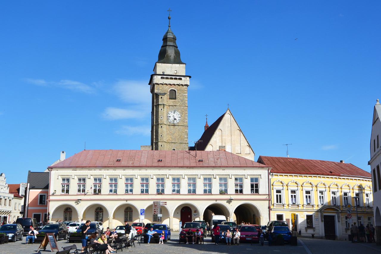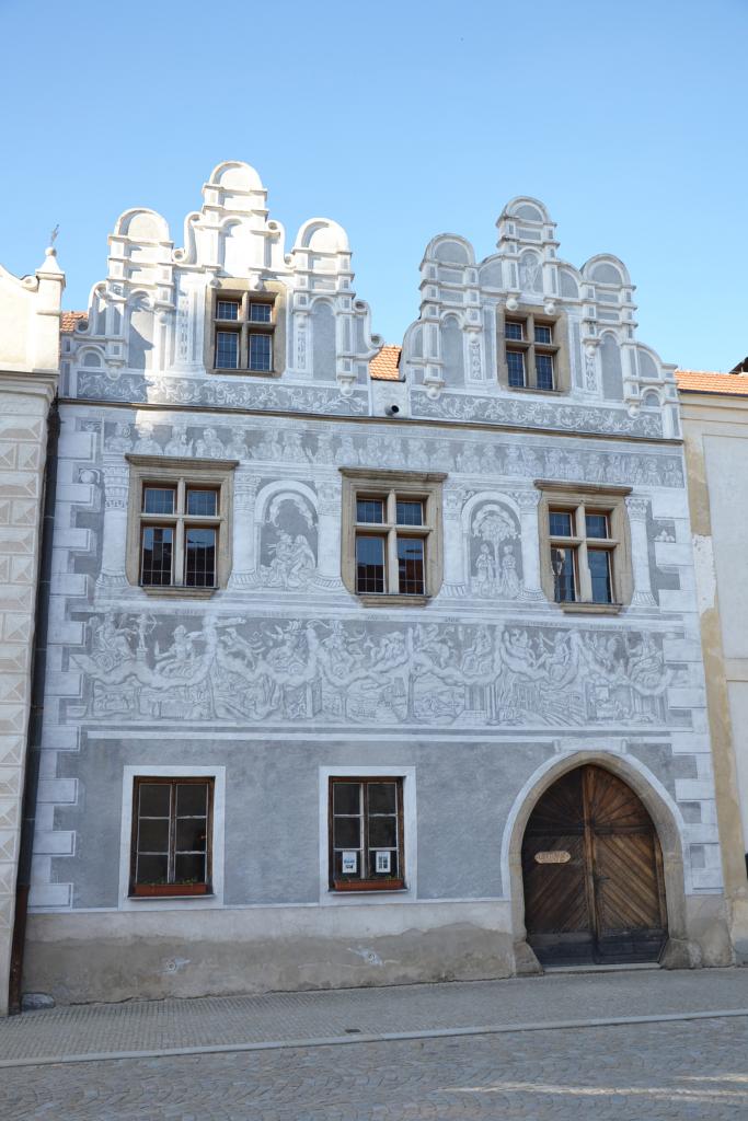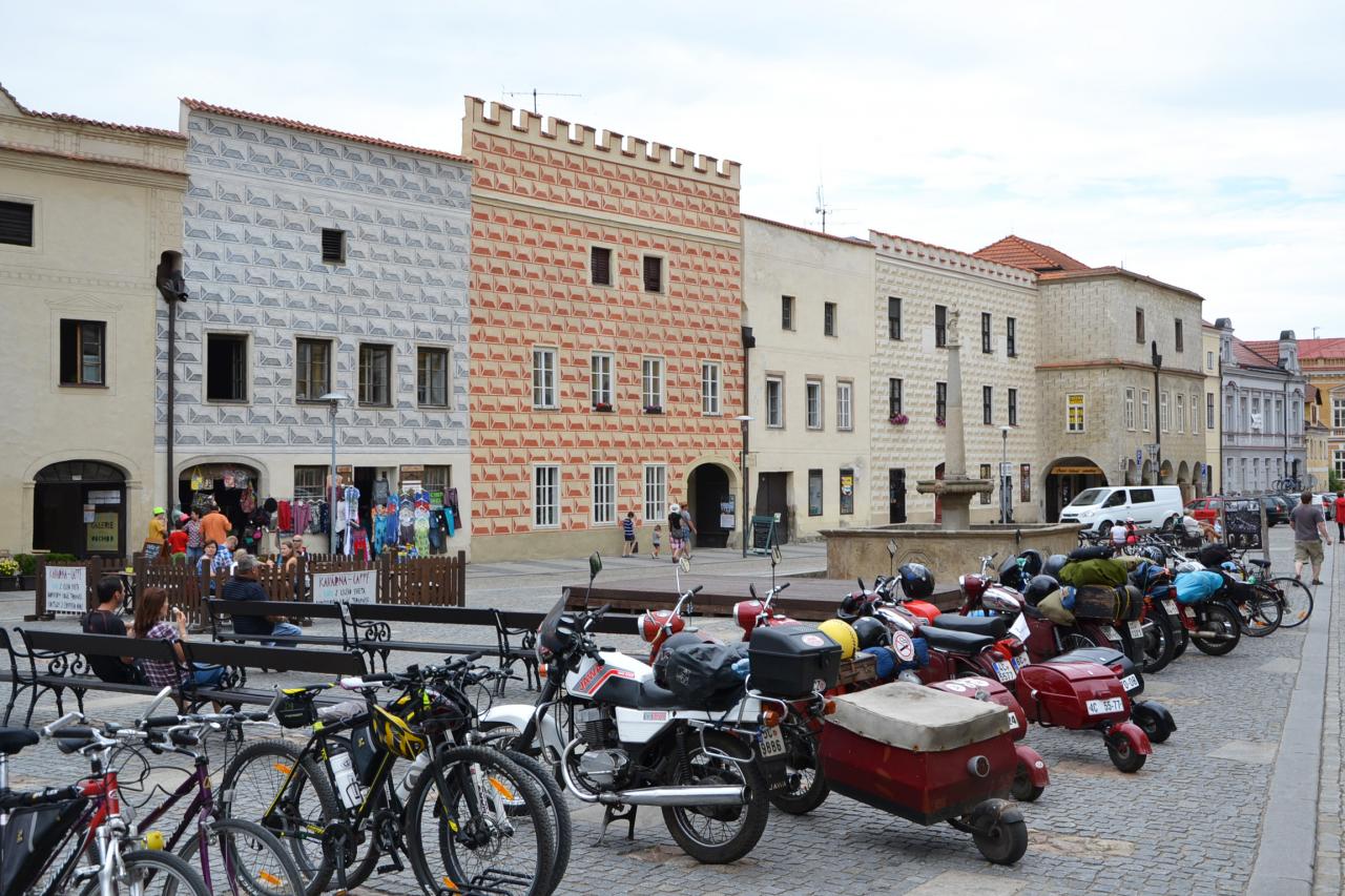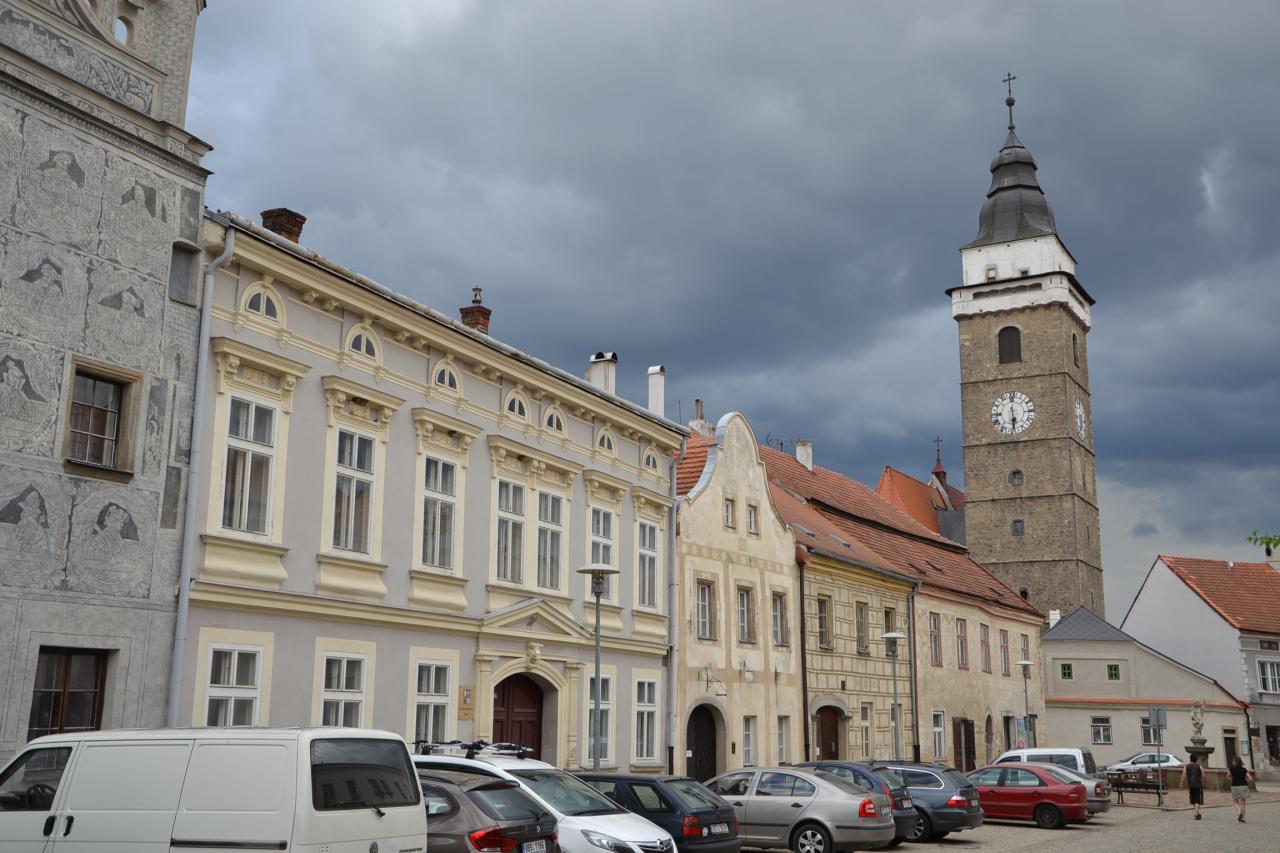 V 1. části tohoto výletu jsem tedy dojel do Slavonic a měl jsem ještě dostatek času si toto město s více než 2.000 obyvateli prohlédnout. I když Slavonice patří pod okres Jindřichův Hradec a tedy do Jihočeského kraje, nacházíme se na Moravě. Historické jádro, není velké, ale pro množství krásných památek je přezdívané „malá Telč“. Ubytovacích možností je zde hodně. Nejen hotely, ale i penziony a různé priváty. Já jsem však na to jedno přespání rozhodně nehledal žádný luxus, a proto jsem si vybral cenově velice dostupný hotel Alfa, který je navíc přímo na náměstí. Odložil jsem kolo a vyrazil na pěší prohlídku. Začal jsem na náměstí Míru, na které navazuje ještě Horní náměstí. Kdo má rád památky, tak pro něj je to zážitek. Renesanční historické centrum s domy s bohatou sgrafitovou výzdobou bylo vyhlášeno městskou památkovou rezervací. Můžeme si prohlížet dům vedle domu, anebo také vylézt na městskou věž kostela Nanebevzetí Panny Marie. Po zdolání 176 schodů se naskytne skutečně nádherný pohled na celé město a okolí.