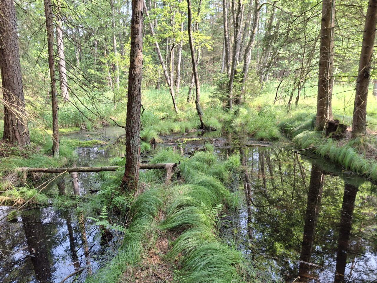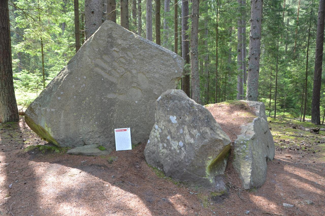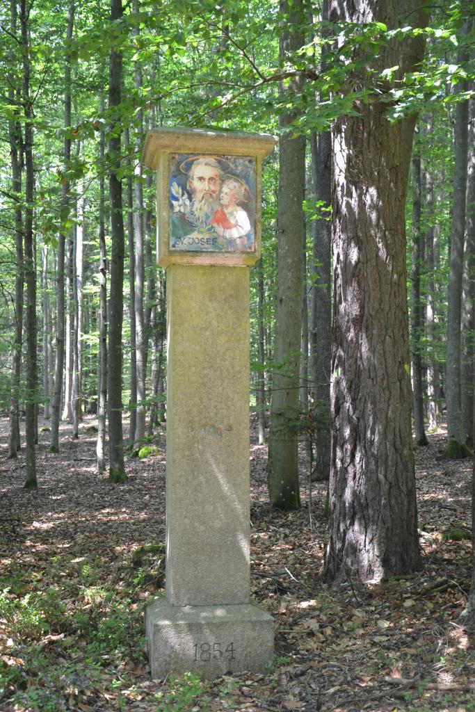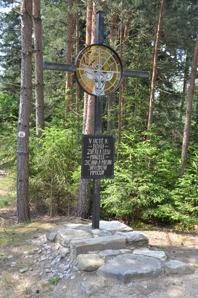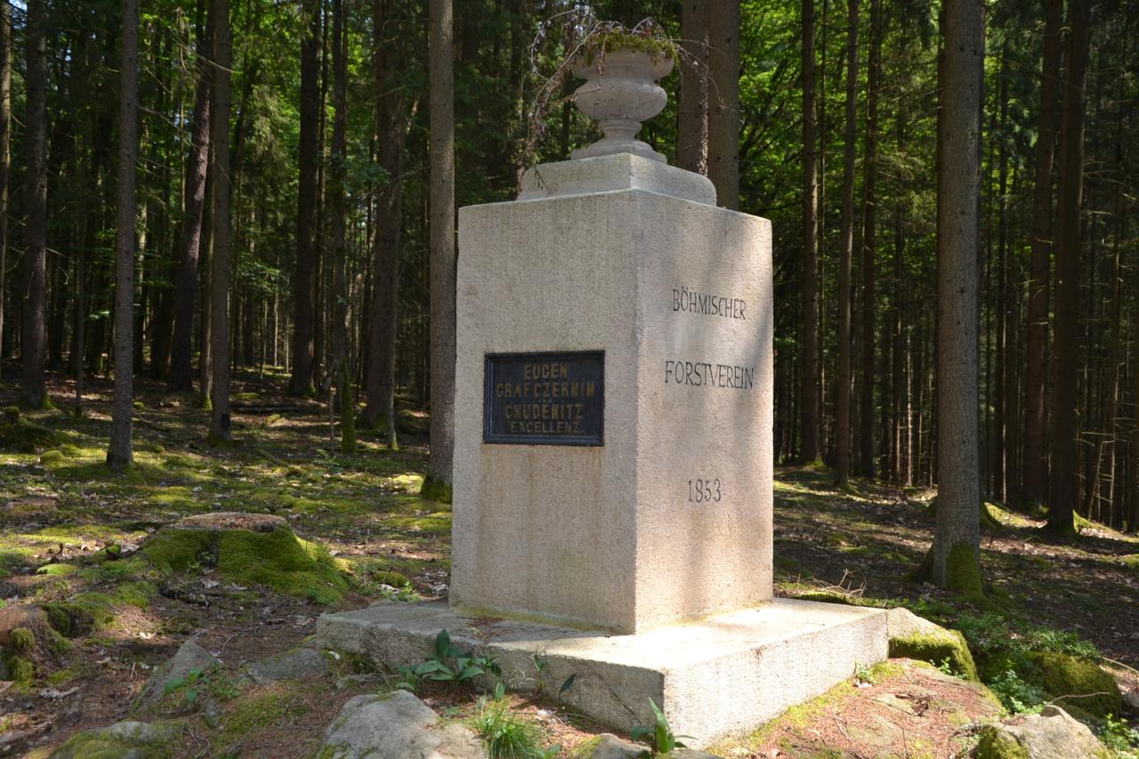 Potom jsme se vrátili kousek zpátky a od rozcestníku se vydali po turistické značce k nejsevernějšímu bodu Rakouska. Leží na soutoku Koštěnického a Červeného potoka. Když se přebrodíte, můžete pokračovat po rakouské stezce. My jsme však pokračovali po našem území po neznačené cestě lesem směr Staňkov. Nebyla to ale jen nudná cesta lesem, každou chvíli se objevilo něco zajímavého. Ďáblova ruka, tj. šestiprstá dlaň, otisknutá do velkého balvanu, Schullerův kámen na památku zastřelení Pavla Schullera z Dobré Vody v roce 1769 (nápis vytesán německy i česky) nebo tzv. Černý kříž, vztyčený teprve v roce 2023, s nápisem „V úctě k Bohu, zvěři a lesu manželé Zuzana a Milan Jiruškovi“ a vedle kříže dřevěná socha lovce s lukem, klečícího na jednom koleni a rukou položenou na srdci. A kolem ubíhající cesty další křížky, kapličky a pomníčky, dokládající mnohdy pohnutou historii těchto míst. Téměř už u Staňkovského rybníku stojí Památník České lesnické jednoty. A tady se znovu setkávám se jménem hraběte Czernina a rodem lesníků Wachtelů, o nichž jsem psal v souvislosti s jemčinskými lesy a parforsními hony a také v článku o Jindřichově Hradci, kde jsem se zmínil o jejich hrobce na bývalém hřbitově u kostela Nejsvětější trojice. Když se v roce 1853 konal v Jindřichově Hradci sjezd České lesnické jednoty, připravil Ferdinand Wachtel vyjížďku pro 247 lesníků a pozvaných hostů do místního revíru, kde se jim pralesovitý porost zalíbil natolik, že se rozhodli zde vybudovat téhož roku památník. Samozřejmě, že místo nápisu Česká lesnická jednota je zde nápis německý: Böhmischer Forstverein. Nyní zase k současnosti. Blíží se čas oběda, před námi je Staňkov, takže je třeba situaci řešit. Pokračování příště.