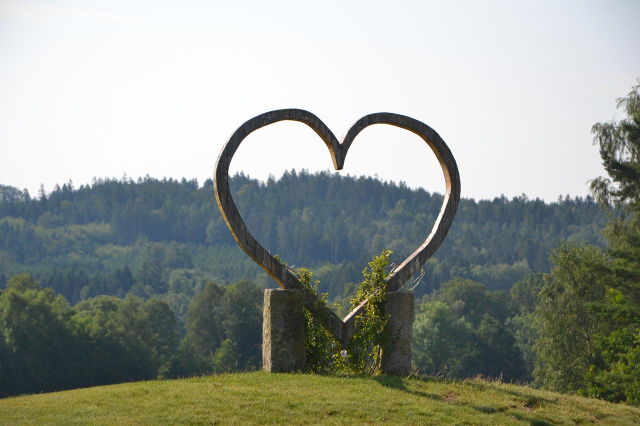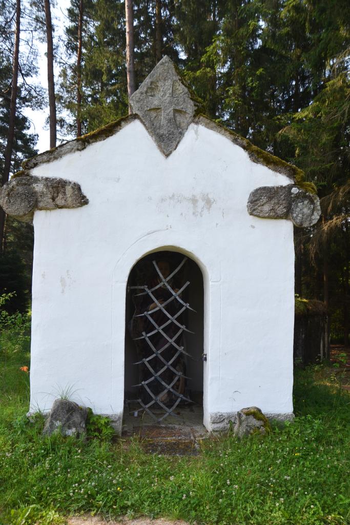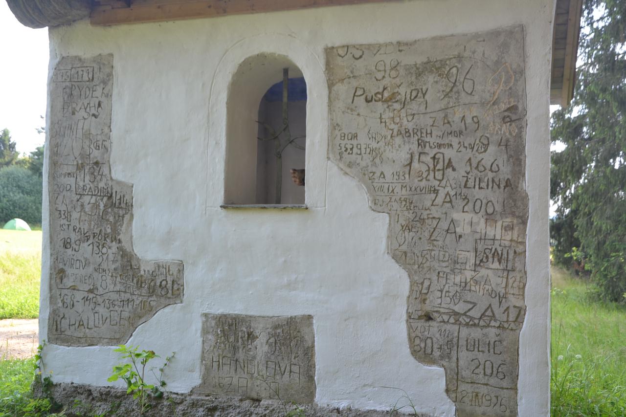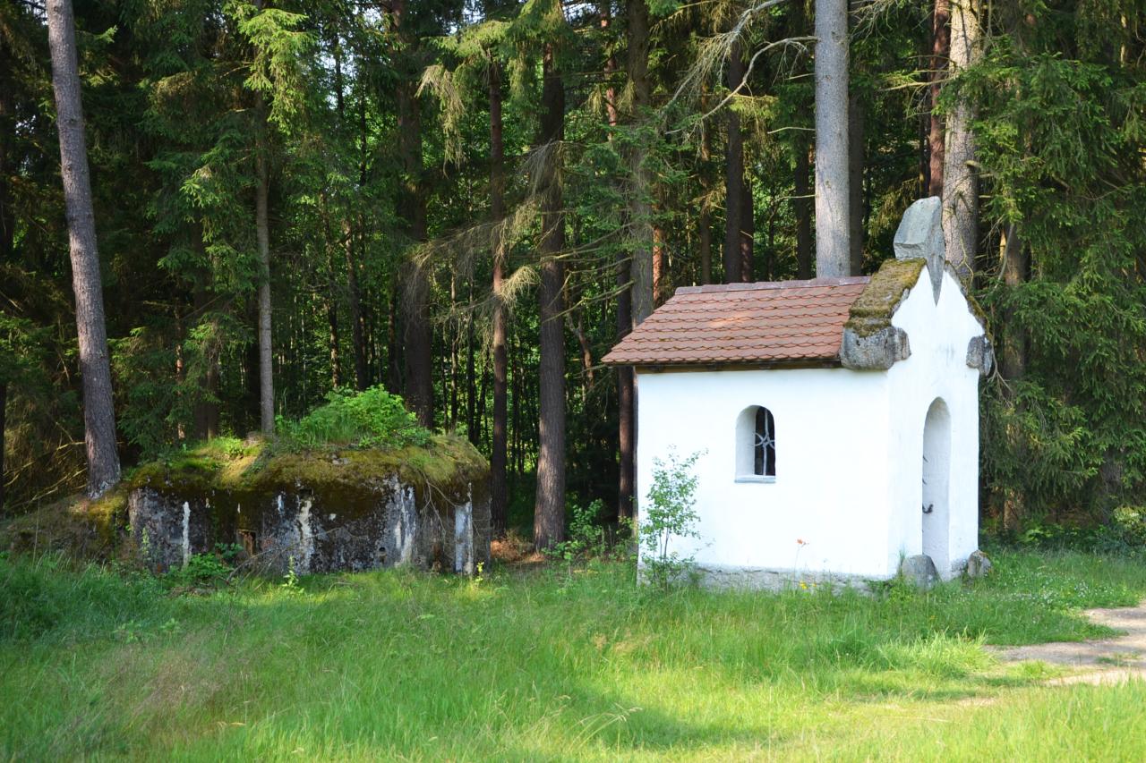 V minulém díle jsem vám, čtenáři, vylíčil, jak jsme první den dojeli oklikou do Nové Bystřice a přenocovali v penzionu Na bojišti. Druhý den po menším nákupu na cestu v místní Jednotě na náměstí jsme pokračovali dál Vitorazskou ulicí a po cestě golfovým areálem, kde jsme udělali malou zastávku na vyhlídkovém místě s velkým rámem ve tvaru srdce, výzvou pro milence, aby se zde vyfotili. Pak již jen vpravo, vlevo green a jamky, skutečně veliký golfový areál, kde se uplatní i golfové vozíky. Pak u rybníku Blanko doprava a je tu Smrčná, malá vesnička, pár domů, samé rekreačky, historický kamenný rozcestník, vedle moderní dřevěná socha, pak kamenná lavička a vedle ní dřevěný turistický přístřešek. Prostě kontrasty. Další o něco větší vesnicí, ovšem rovněž převážně rekreační s množstvím nabídek ubytování je Nový Vojířov. Střed vesnice tvoří soustava rybníčků, u nichž stojí dřevěná zvonička a pod ní kaple sv. Andělů strážných. Malebné místo, lákající k zastavení a vyfocení ze všech stran. Trochu stranou je památná lípa a potom už pokračujeme dál. Na mapě jsem objevil místo se čtyřmi rybníčky a poznámkou „pískovna“, nic víc, žádné foto. Místo bylo skutečně hezké, upravené ke koupání, rybaření a odpočinku, avšak celý pozemek soukromý a oplocený. Cesta dál vedla po louce kolem zaniklé osady Amerika, kolem několika indiánských tee-pee, které hlídal jeden kluk před nepřáteli, na okraj lesa, kde stála kaple a vojenský bunkr. Zase kontrast. Obzvlášť, když na jedné boční straně jinak hezky zrestaurované kapličky byly ponechány vyryté nápisy se jmény vojáků, kteří zde kdysi hlídali vojenský prostor, a názvy míst s čísly, odkud jsou a za jak dlouho to mají do civilu. Místa vesměs na Slovensku a čísla ne malá. Při pohledu na kapličku zepředu na vás při troše fantazie hleděl templářský rytíř (přilba s křížem, ramena, ruce, nohy), objímající kapličku. Po prknech a polenech jsme překonali mokřad přírodní památky Koštěnický potok, zastavili se ještě u dvou bunkrů, které byly poničené, což dělali jako zkoušku odolnosti ať již za války Němci nebo po válce naši vojáci.