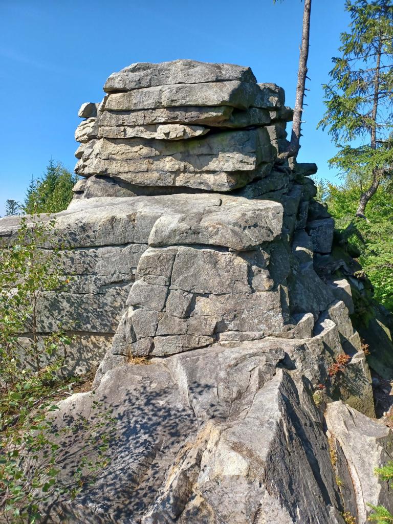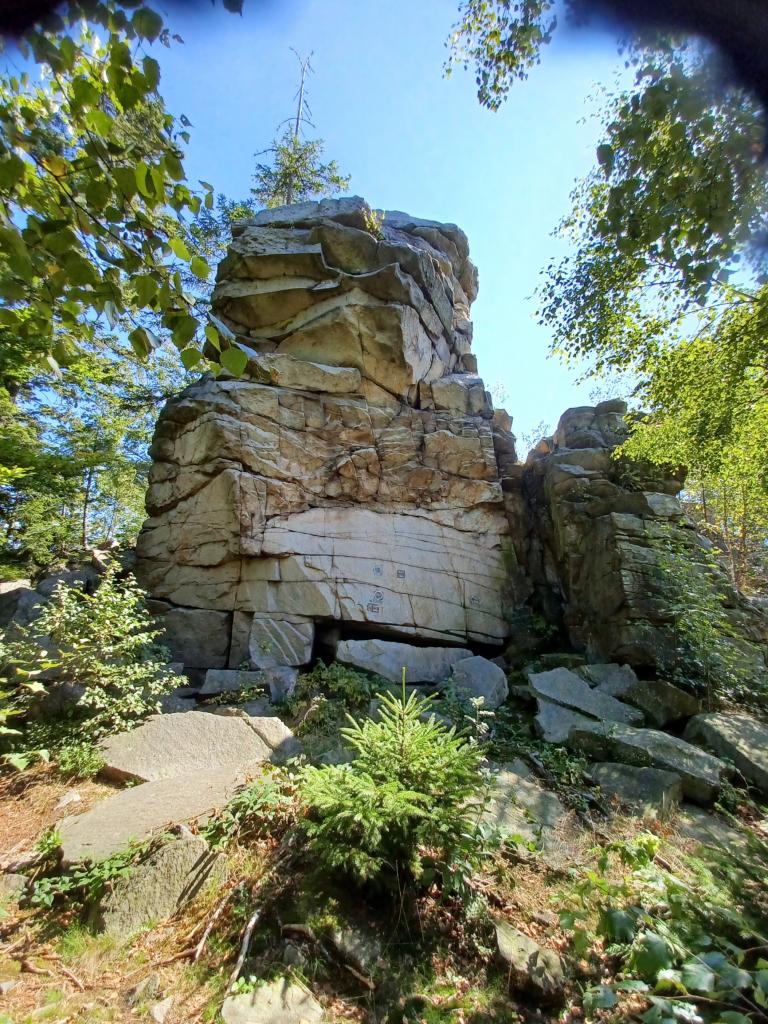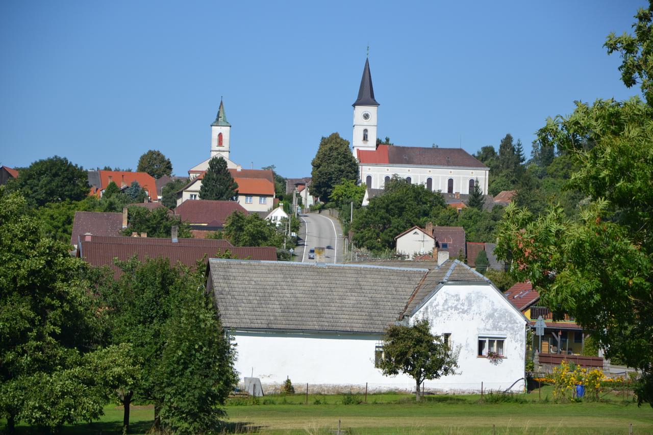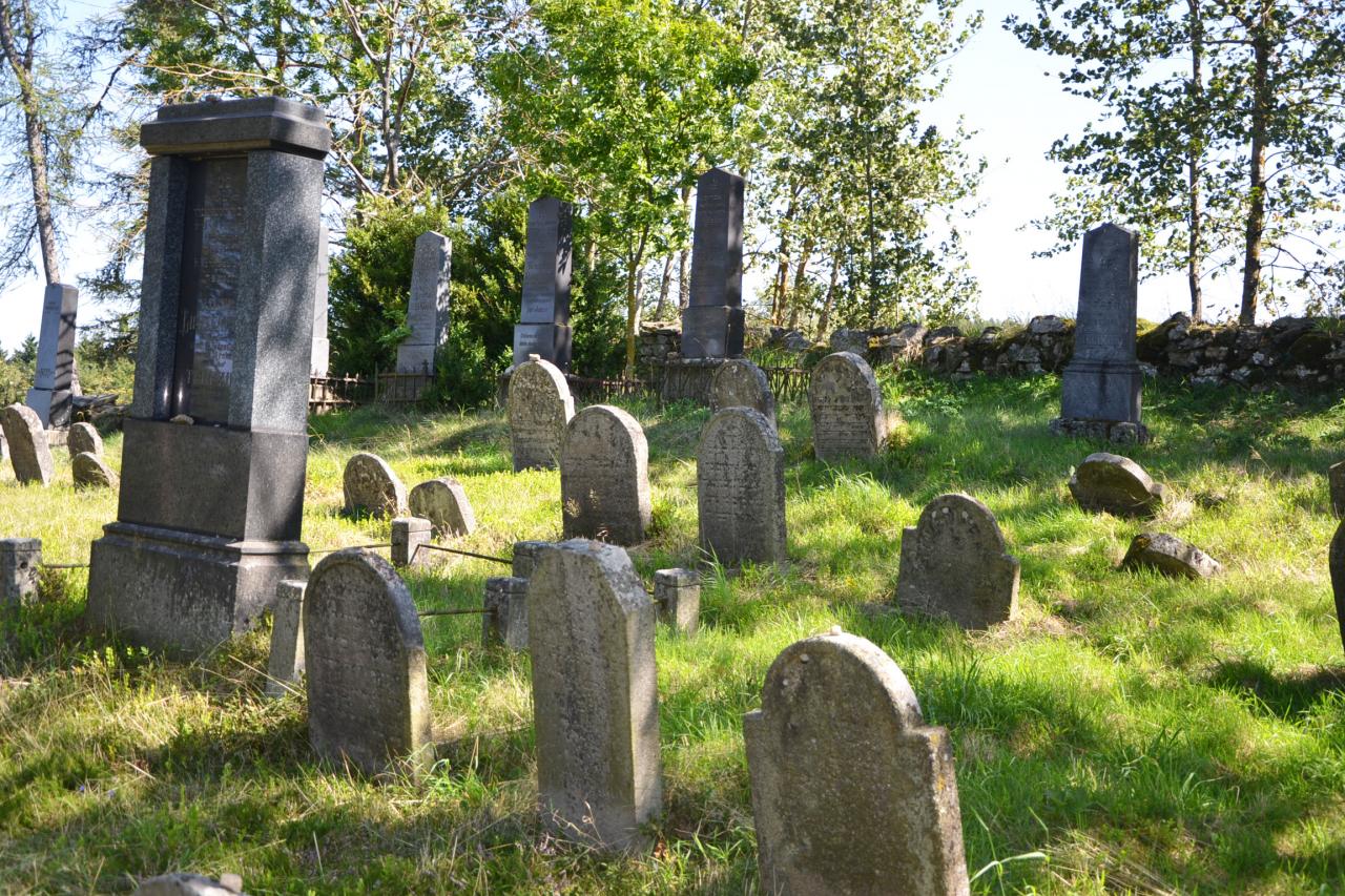 Dále jsem jel polní cestou kolem hřbitova a po silnici do Řečice, kde je rovněž zámek, jehož poslední využití bylo jako školící a rekreační středisko podniku Drogerie Jihlava, než byl po roce 1989 navrácen původním majitelům. A pokračuje stoupání a to do Velké Lhoty. Již z dálky je vidět její zajímavost a to dva kostely, stojící přes ulici proti sobě, a o to je to ještě zajímavější, že se jedná o dva evangelické kostely. Evangelické kostely nejsou zasvěceny žádnému patronu, proto se zde odlišují jako horní a dolní. Abychom našli vysvětlení, musíme jít do historie. Dolní kostel je starší, původně luteránský. Horní kostel vystavěli tzv. reformovaní (helvétští) evangelíci, přičemž v roce 1918 se oba sbory spojily v Českobratrskou církev evangelickou. Trochu mi to štěpení a spojování připomíná dnešní politiku. A jako by toho stoupání nebylo dost (konec konců jsme v Javořické vrchovině), tak jsem se ještě rozhodl pro 760 m vysoké Hradisko. Odměnou mi byl daleký rozhled a zejména zajímavé skalní útvary na vrcholu. Takže se pokochat a zase z kopce dolů zpátky do Velké Lhoty, a jelikož bylo poledne a ještě k tomu pěkné horko, tak jsem si řekl, že by bylo už na čase na jedno pivko. Což o to, hospoda z venku pěkná, ale na ní cedule ZAVŘENO, a když jsem přistoupil blíže ke dveřím, viděl jsem menším písmem NA POŘÁD. Tak další oběť této smutné doby. Že by konec vesnického pohostinství? Pokračoval sešup až do Brandlína (311 m/m) a opět stoupání kolem známého rekreačního střediska Klepákova mlýna do Heřmanče. Po chvíli se konečně stoupání zlomilo a následovaly Olšany. Nejprve před vesnicí na mírném kopečku ukrytý židovský hřbitov. Po vstupu rozbořenou zdí je možné si mezi borůvčím prohlédnout množství starých i novějších náhrobků s hebrejskými, ale i českými nápisy. Smutný mi připadal třeba tento: Zde odpočívá paní Karolína Roubíčková, zemřela ve věku 29 let, oželena od svého dítěte, matky, bratra a muže. Další zajímavé místo v Olšanech je zámek, jehož součástí je kostel, to vše samozřejmě na kopci, kde uprostřed asfaltové cesty stojí křížek a samotná stavba je ze všech stran dost zarostlá. Přitom je zde údajně i možnost prohlídky. Hospodu tady ve vsi mají, ale otevírá až později.