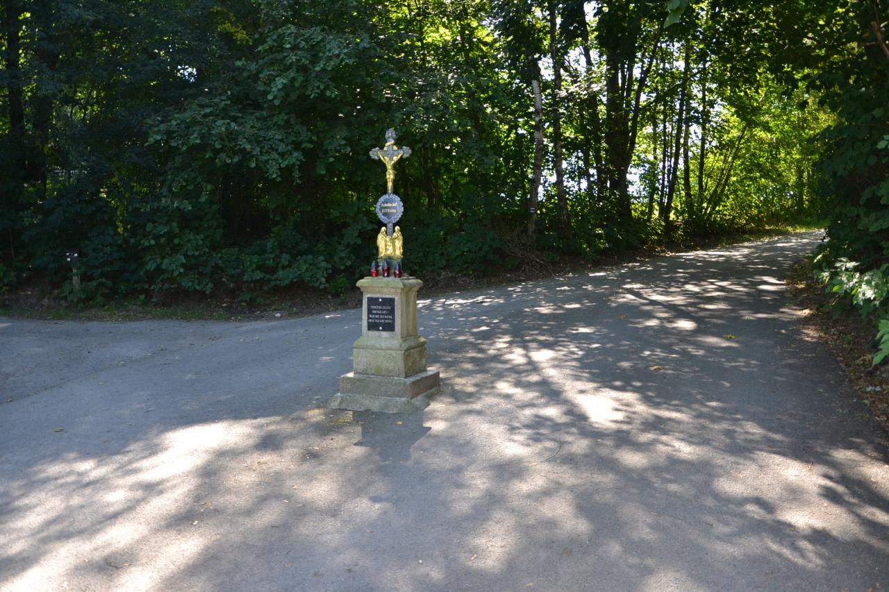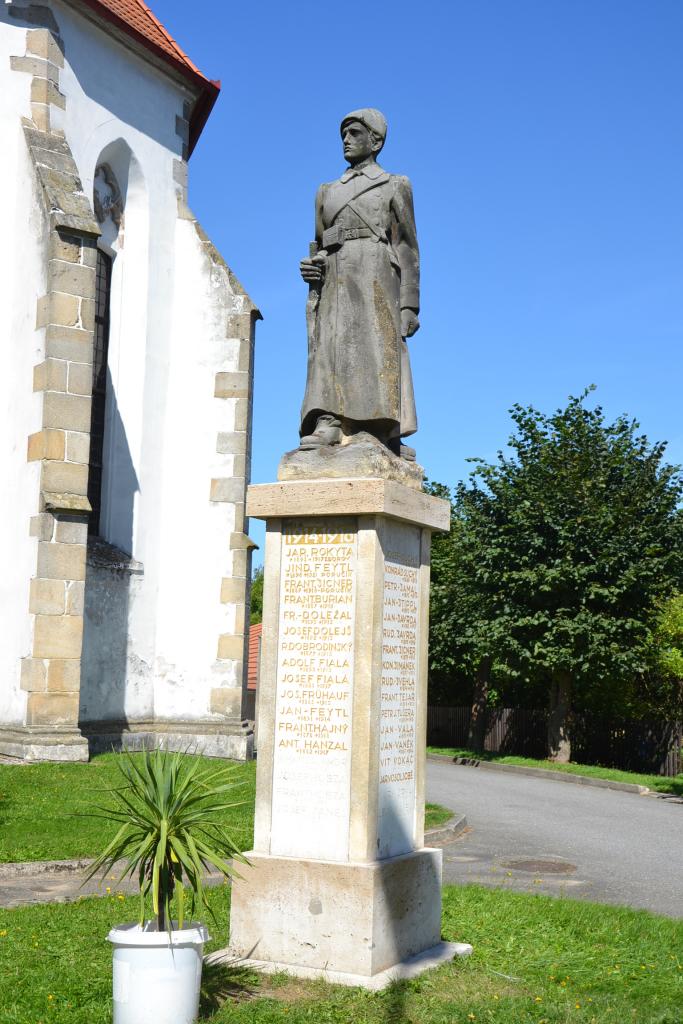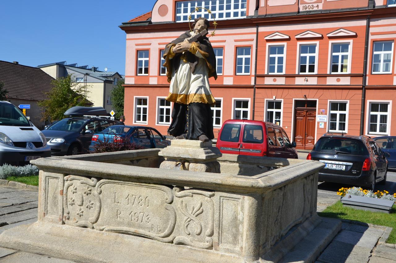 Za mírného klesání jsem dojel až do Kunžaku, od Jalovčí dokonce po zcela nové silnici. Nejdříve jsem si obec prohlédl, tedy kostel sv. Bartoloměje, ke kterému přiléhá fara a v blízkosti jsou dvoje Boží muka, socha sv. Jana Nepomuckého a pomník padlým v 1. světové válce. Na náměstí (ano, je zde náměstí, přestože se nejedná o město, i když Kunžak má 2x tolik obyvatel než Deštná) jsou zejména dvě kamenné kašny. Jedna z roku 1780 s barevnou sochou sv. Jana Nepomuckého, přesněji, socha je z tohoto roku a kolem ní bylo kamenné zábradlí a z něho byla až v 20. století vystavená kašna. Druhá kašna je zdánlivě prostší, avšak na to, že je vytesána z jednoho kusu žulového kamene, je obrovská. Má však tu smůlu, že stojí u základní školy, takže je popsána různými nápisy, které se autorům už nevešly na asfaltovou plochu u školy. A konečně následoval oběd. Hezké venkovní posezení U DĚRAVÝHO KOTLE, poctivý řízek a Popelínské pivo. Co víc by si mohl člověk přát? Snad jen nemít to ještě dost daleko domů. Naštěstí žízeň vcelku rozumně brzdila za výčepem sedící obsluha, která aby zvládla tři hosty, musela by občas odtrhnout oči od mobilu, což se jí moc nedařilo. Jelikož bylo také třeba si koupit něco domů k večeři a nejblíže byl Vietnamský obchod, zašel jsem tam a byl jsem překvapený, že rohlíky zde stály stejně jako v supermarketu. Nechci tím zde dělat reklamu Vietnamcům, ale spíše dát podnět k zamyšlení, že ne vše, co se nám snaží servírovat supermarkety s označením „levné“, „sleva“, „jen“ a „pouze“ je skutečně pravdou. Tak to bylo takové zamyšlení po obědě a nyní dále přes Střížovice, Vlčice, kolem Ratmírovského rybníka, přes Blažejov, Jindřiš, samozřejmě ještě se zastávkou na koupání v Pískovně, přes Městský les, Dolní Skrýchov, Drahýšku, Lodhéřov a už jsme doma. Hezkých 71 km, ale horší bylo to převýšení, vystoupáno 1.266 m, klesání o něco méně, takže zpáteční cesta byla trochu náročnější.