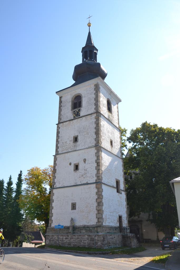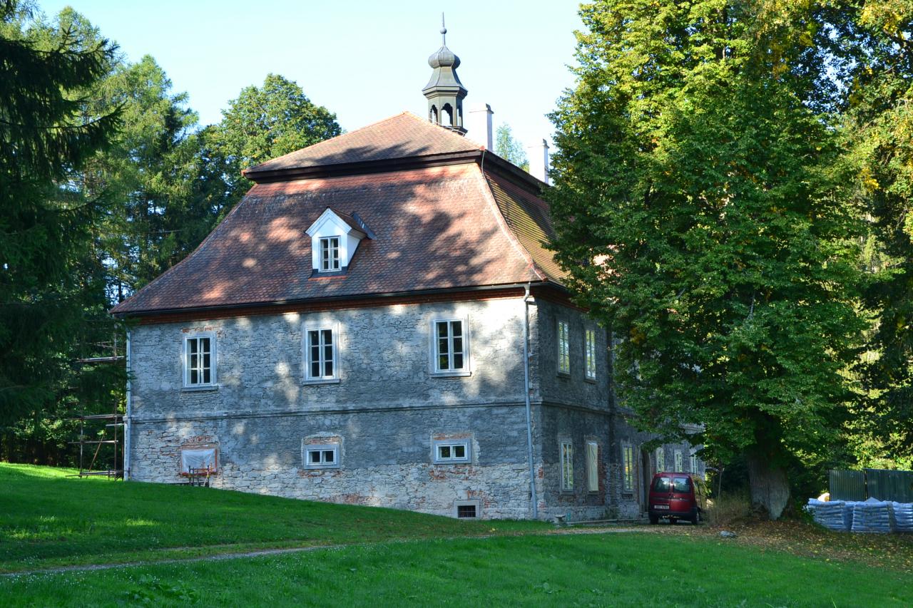 Z Kláštera jsem jel po asfaltové lesní cestě (cyklotrasa č. 1006), zřejmě bývalé vojenské signálce, protože zde vlastně všude býval vojenský prostor. Na 7 km dlouhé cestě z Kláštera do Dobrotína jsem nepotkal nejen žádné auto, ale doslova ani živáčka. Cesta krásně rovná, pořád lesem, v jednom místě mezi stromy vykoukne přírodní památka Gebharecký rybník a pak před Filipovem – kaple. Na kapli žádný kříž, ale na střeše komín a střešní okno a u kaple složená hromada dřeva, kousek dál kadibudka. Nakoukl jsem do kaple oknem a skutečně vnitřek přizpůsobený k obývání. No super romantika! Na konci Dobrotína jsem odbočil doprava na polní cestu, po které jsem dojel k zámku Dobrohoř. Zámek po létech chátrání prochází celkovou rekonstrukcí. Je zde možnost občerstvení i ubytování. Konají se zde výstavy a kulturní akce a u zámku je několik zajímavých soch. Další zastávka Staré Město pod Landštejnem. Město samotné není nijak zajímavé až na velkou zvonici a židovský hřbitov, který je na kopci a vzhledem k chybějícím částem zdí je volně přístupný. Skutečně krásné kamenné náhrobky, nejstarší pochází z roku 1610.