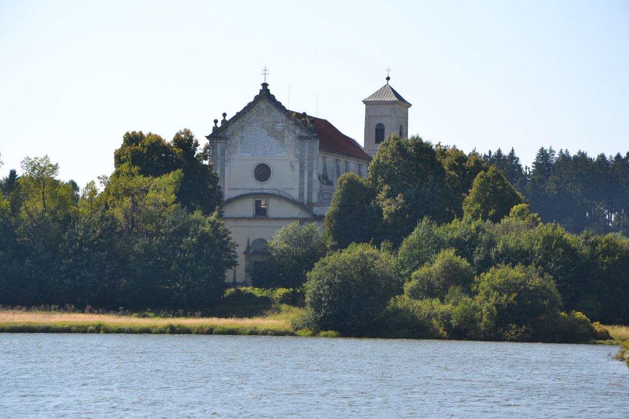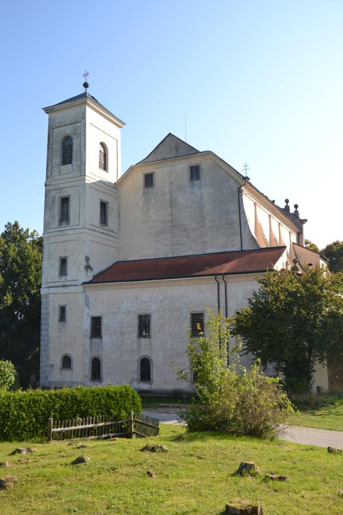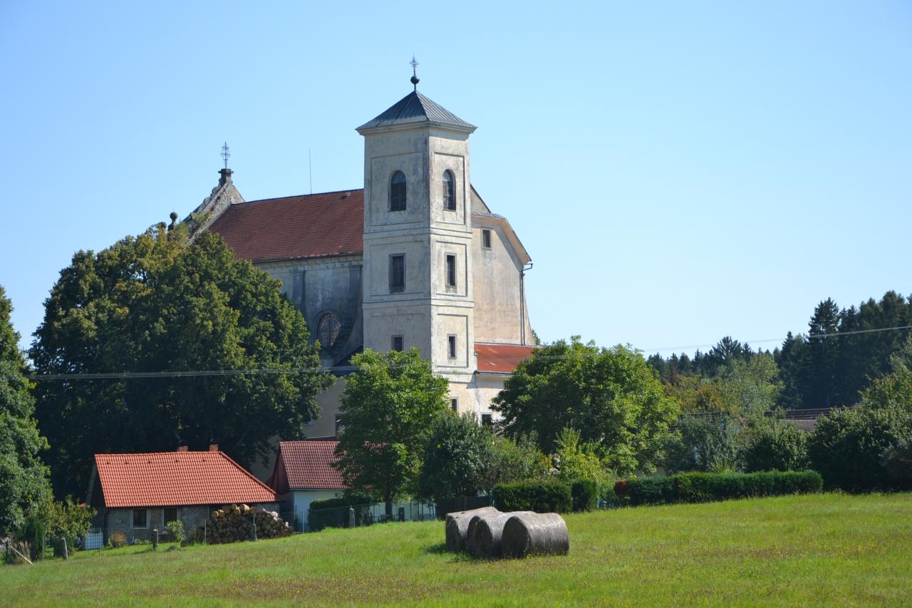 Z Nové Bystřice jsem se vydal po málo frekventované Staré ulici (modrá turistická značka) přes Albeř s hezkým starým špejcharem, kaplí a soukromým zámečkem Terezín a už jsem byl v Klášteře. Zde je veliký kostel Nejsvětější Trojice se zajímavou historií a možností prohlídky, bohužel od pěti osob. Byl jsem sám, takže jsem přišel mj. o zajímavost, když se pod oltářem mají stékat tři léčivé prameny. Kdybyste si sem naplánovali cestu, tak objednávky na tel. č. 602 703 007. Kostel je však hezký i zvenku, před ním pak stojí socha sv. Františka z Pauly, studánka, vzniklá soutokem uvedených tří pramenů a dvě chráněné lípy.