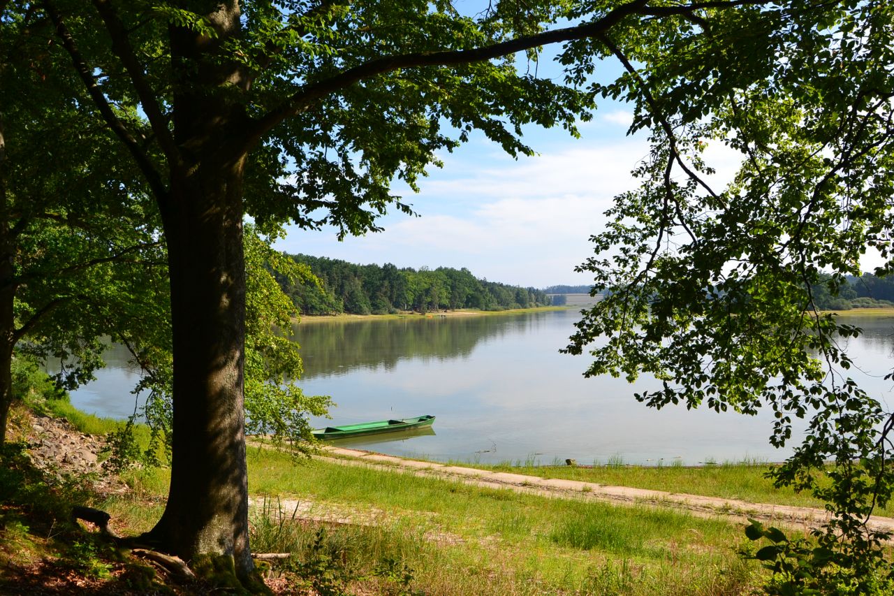 Těch tras si zde můžete naplánovat skutečně hodně a rozhodně to stojí vždy za celý den. Já jsem naposledy volil tuto: Po silnici alejí památkově chráněných lip kolem zámku Červená Lhota (ten pohled nikdy neomrzí) do Kardašovy Řečice, kde jsem měl možnost se podívat do jindy uzavřeného pěkného anglického zámeckého parku a kde jsem se dozvěděl, že zámek s celým parkem plným dalších staveb, je na prodej za 26 mil Kč (začnu trochu šetřit, zámek by se mi líbil a měl bych kam dát svoji sbírku pivních sklenic, kterou mi už, nevím proč, manželka neumožňuje rozšiřovat), přes zeď jsem nahlédl na židovský hřbitov, který je uzavřený, dále přes Cikar, kde už od rána byl rybník Popelov obklopený rybáři, kolem rybníka Holná, kde jsem si všiml, že je nějak málo vody, zajel jsem k Lannovu kříži, železný kříž z roku 1854 na vrcholu velkého balvanu, vystavěný na počest stavitele Lanna, dále krásnou rovnou lesní cestou až na Jemčinu. V Jemčině je zámek, který je sice od roku 2002 v soukromém vlastnictví a z části zámku je hotel, ale i tak je zde přístupná prohlídková trasa po interiérech včetně expozice o pobytu raketového vojska. Nyní však je celý areál vč. restaurace (nevím proč) uzavřený. Na cestě z Jemčiny na Metel jsem napočítal 17 památných stromů, vesměs dubů, z nichž asi nejvíce zaujme tzv. veledub, strom starý přes 400 let s obvodem kmene 850 cm, údajně nejmohutnější dub v Jižních Čechách a 6. v ČR. Po obvodu jsou kamenná sedátka, kde můžete na chvíli spočinout a čerpat energii. Těch velkých a starých dubů je v těchto místech ale daleko více, ať již kolem cest nebo stojících solitérů uprostřed pastvin. Minul jsem jezy Metel a Hamr obležené vodáky. V Hamru stojí za zhlédnuté stará kamenná tvrz z 15. století a na hřbitově kromě kostela hezká polodřevěná zvonice. A jelikož bylo horko, tak už jen nejkratší cestou na Vlkovskou pískovnu, kde i v tom srpnovém vedru byla poměrně čistá voda, rozhodně příjemné osvěžení. Kromě velké přeplněné pláže je zde spousta malých plážiček vč. té pro nudisty. Co jsem nevěděl a zjistil později, že všechny ty zatopené pískovny mezi Veselím a Vlkovem patří nějaké s.r.o. se sídlem v Praze, jejímž jednatelem a jediným společníkem je 65-letý JUDr.Slabý z Jemnice. To mě zaujalo.
