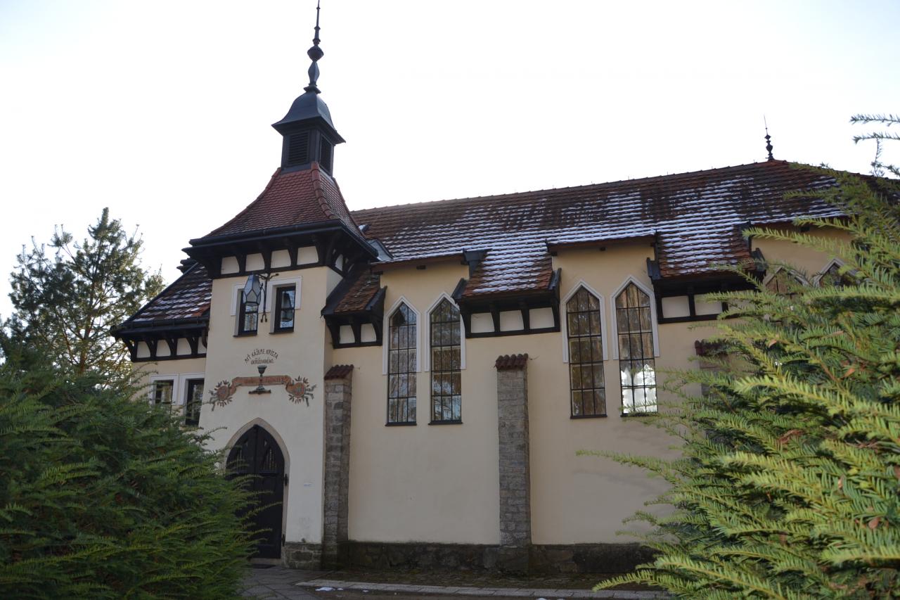 Jak míjíme jednotlivá zastavení křížové cesty, dostáváme se do Mertových sadů. Skutečně oblíbené místo mladých i starších lidí, protkané křížem krážem cestičkami, spíše neupravenými. Odpočinek zde nalezneme ve dvou pěkných altánech. Na horním okraji sadů stojí evangelický kostel. Zvláštní stavba postavená během pouhých pěti měsíců v roce 1906, která mně osobně připomíná spíše nějaký lovecký zámeček nebo netradiční vilu.