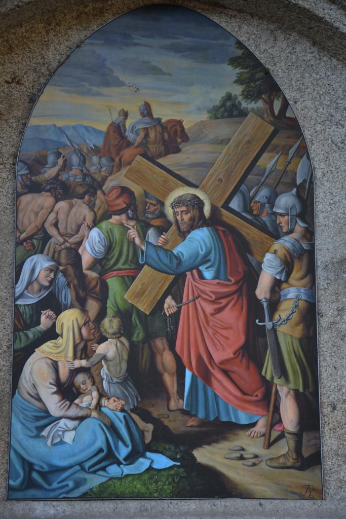 Vrátíme se na cyklostezku a podél pomalu plynoucího proudu Nežárky se dostaneme až pod Nežáreckou bránu, přejdeme most a zde začíná křížová cesta. To by samo o sobě bylo téma na několik stránek, ale tak se zde rozepisovat (a opisovat cizí texty) nebudu. Takže jen krátce. První křížová cesta zde byla již na počátku 16. století. Od té doby byla několikrát obnovována, opravována, rozšiřována. Původně měla jen 10 zastavení, nyní jich je 14. Jednotlivá zastavení jsou hezké barokní výklenkové kaple. Původně v nich byly malby na plechu, které samozřejmě do dnešní doby nevydržely. Současná podoba křížové cesty je z roku 2014 a ve výklencích jsou barevné fotokopie křížové cesty z kostela Nanebevzetí Panny Marie.