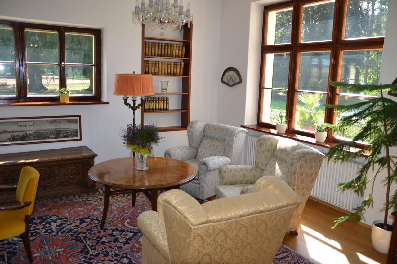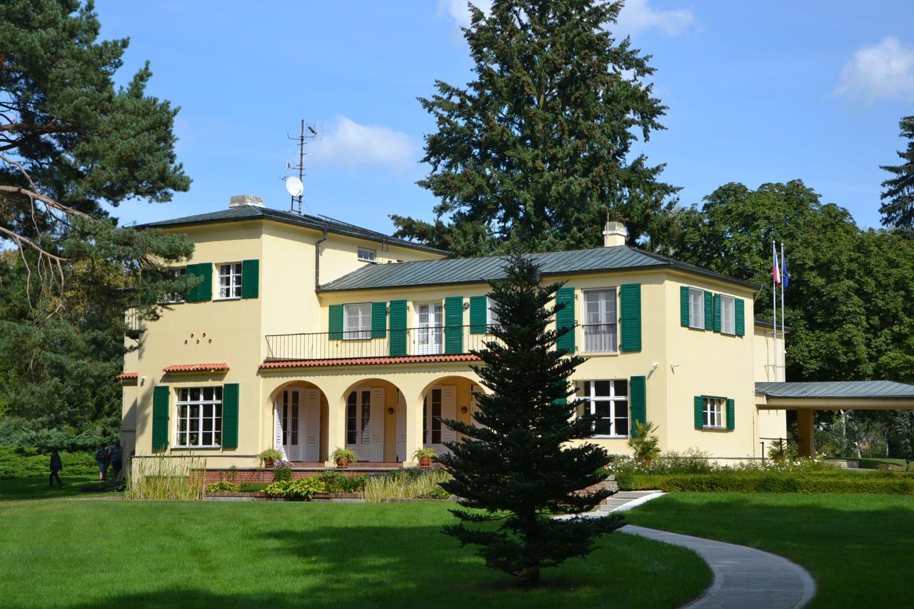 Vilu si nechal Dr. Beneš, ještě jako ministr, se svou manželkou Hanou postavit v letech 1930-1931 na vrchu Kazatelna (údajně zde také kázal Jan Hus) po vzoru venkovských stavení na jihu Francie. Po smrti bezdětné Hany Benešové v roce 1974 (Beneš zemřel 1948) podle její závěti měla vila s pozemky připadnout muzeu v Táboře, avšak dům byl převeden do majetku Úřadu vlády a celý objekt byl uzavřen. Vila prošla od roku 1937 do roku 2009 různými úpravami a přístavbami. Teprve v roce 1990 byl pro veřejnost zpřístupněn rozsáhlý anglický park s hrobkou E. Beneše a jeho choti. I v posledních letech část vily slouží jako luxusní apartmá pro předsedu vlády (pro ostatní členy a zaměstnance vlády byla adaptována bývalá správní vila na okraji pozemku). Podstatné části vily však byla vrácena původní podoba a slouží jako muzeum. Vila je veřejnosti přístupná teprve od roku 2009, bývalo to jen dva dny v roce, poslední asi tři roky o víkendech pár měsíců v roce po předchozí rezervaci. Rezervaci jsem neměl, ale doplnil jsem skupinku akorát na maximální počet 15 osob, takže jsem měl štěstí a prohlédl si všechny místnosti, které Benešovi užívali, vybavené původním nebo dobovým (mnoho věcí bylo rozkradeno Němci za války) nábytkem a dalšími předměty. V parku je dále památník, který je rovněž věnován životu a dílu Dr. E. Beneše.