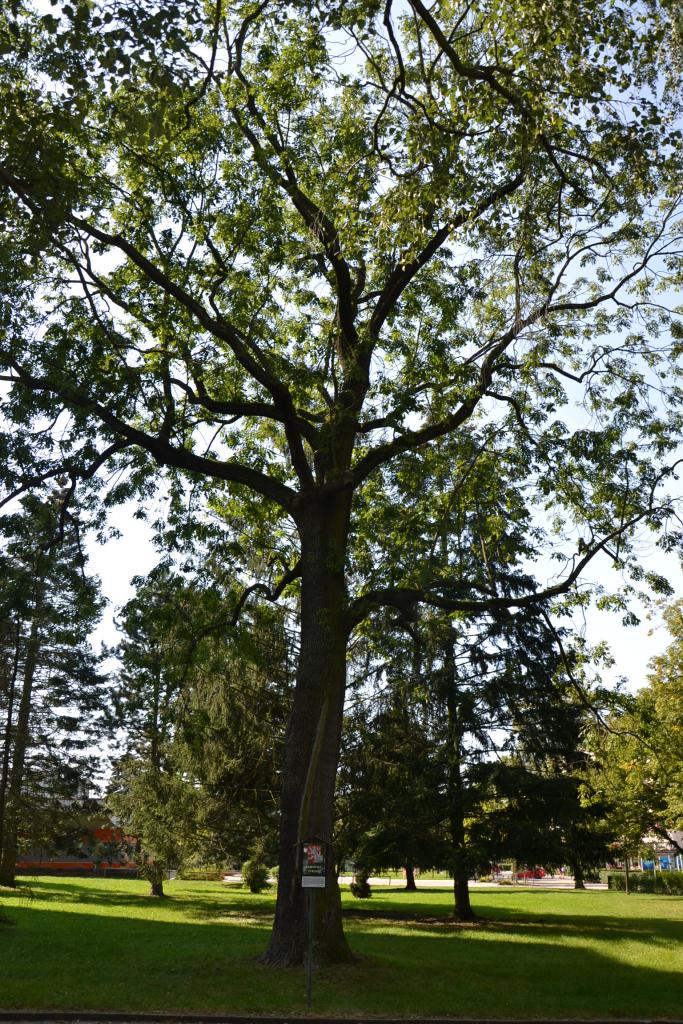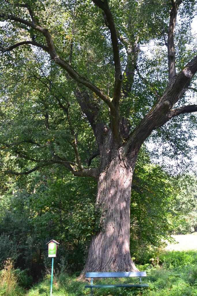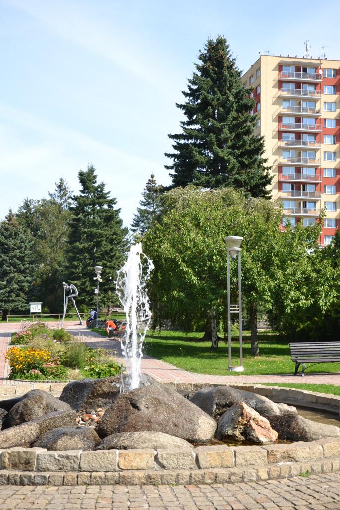 Kolem Kozského potoka můžeme po zelené značce dojet až do Sezimova Ústí. Já jsem ale volil o trochu delší cestu - cyklotrasu kolem hájovny Nechyba, u které stojí mohutná památná lípa, a potom jsem teprve dojel do centra Sezimova Ústí II, kde je opět památný strom, tentokrát jasan, který skutečně stojí za pozornost, protože byl vysazen kolem roku 1910 u statku, v té době všude kolem jen pole a louky. Na jejich místě postupně od roku 1939 vyrostlo město. I statek byl zbourán, jen jasan přežil. A zde je vlastně centrum města – náměstí s upraveným parkem a fontánou a kolem obchody a škola. Odsud jsem pokračoval po červené turistické značce, podjel jsem železnici, hlavní silnici pro změnu nadjel a byl jsem v Sezimově Ústí I, kde byla mým cílem vila bývalého prezidenta Dr. Edvarda Beneše.