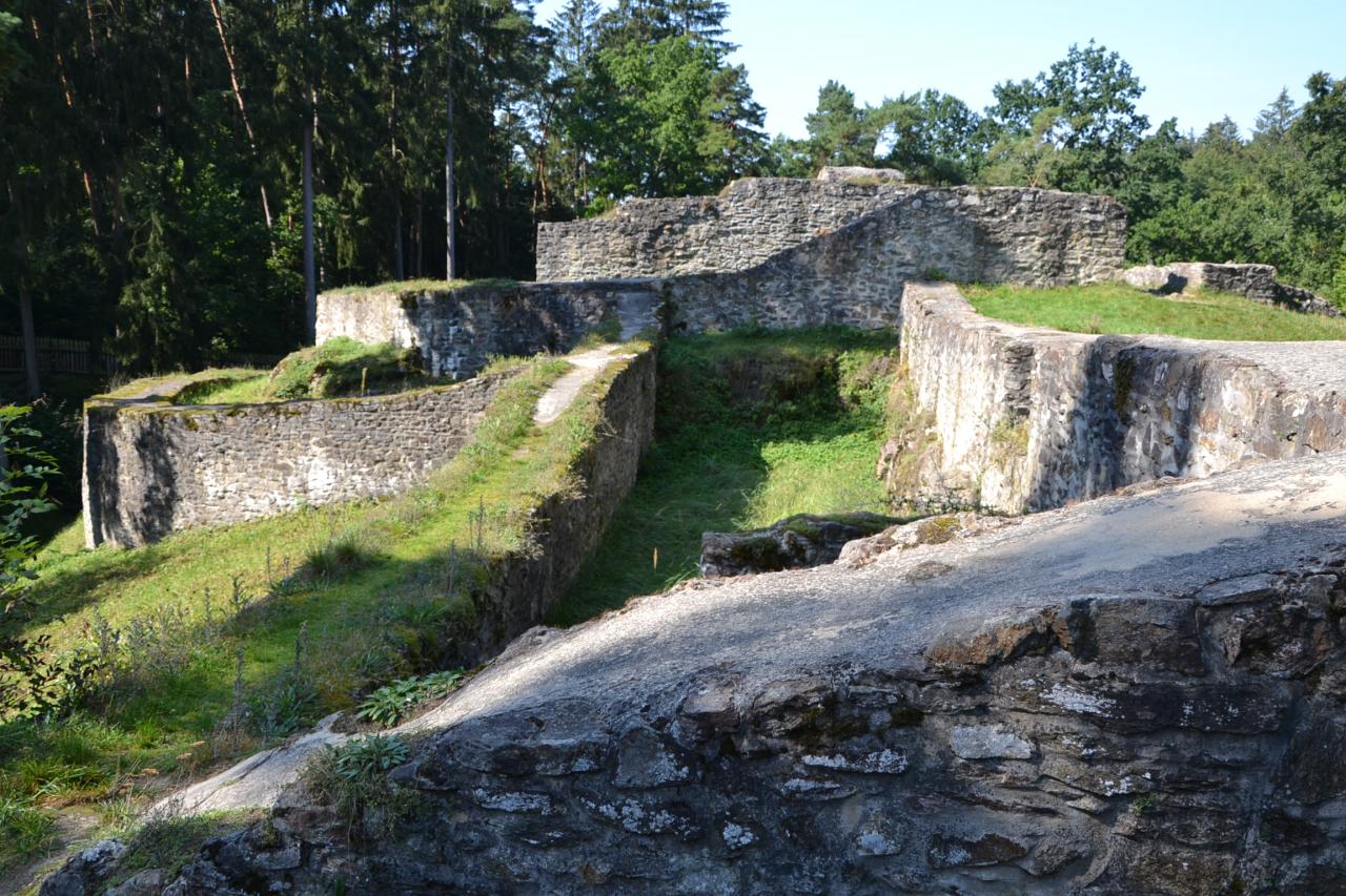 A po krátké odbočce již přede mnou byl Kozí hrádek. Kozí hrádek stojí za pozornost nejen jako zřícenina gotického hradu, ale i jako místo, kde v letech 1412 – 1414 kázal mistr Jan Hus, když nemohl již kázat v Praze, protože církvi samozřejmě vadila kritika jejich zpustlého, pokryteckého života, a tak ho nazývali kacířem. Vstup je zpoplatněný, je třeba si předem zjistit otevírací dobu. Než navštívíme samotnou zříceninu, doporučuji udělat malý okruh kolem ní, kde se na naučných tabulích dozvíme mnoho zajímavého nejen o bývalém hradu a působení Mistra Jana Husa, ale řadu dalších cenných informací. Jednou ze zastávek je i Sokolská mohyla z roku 1924.