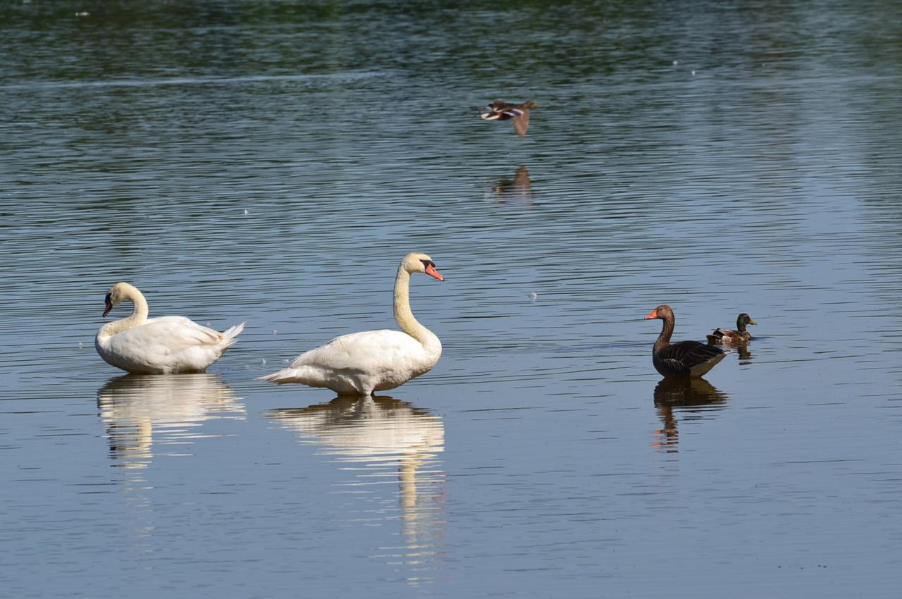 Fotit ptáky není vůbec jednoduché. Bezesporu je snazší fotit nějaký barák, zříceninu nebo stojící auto. Stromy už mohou být složitější, může fouknout vítr, hýbe se listí nebo celá větev a už to máte rozmazaný. Ale ptáci! V podstatě jsem si je zde rozdělil na dvě skupiny. Na ty, kteří přede mnou neutíkali, protože byli bezpečně schovaní v rákosí. Jejich pronikavý zpěv jsem slyšel ze vzdálenosti pár metrů, ale neviděl jsem žádného, ani když jsem je přesvědčoval, ať vylezou, že je potřebuju vyfotit. Druhá skupina byli vodní ptáci, ty jsem viděl, jenže to bylo dost daleko na můj foťák, nemám totiž žádný profi teleobjektiv. Snažil jsem se je přesvědčit, že se nemusí bát, že si je jen vyfotím a budou ještě tím pádem slavní, ale kdepak, jakmile jsem se přiblížil, frrr a byli pryč nebo aspoň o kousek dál. Dokonce takové divoké husy třeba vylezly až na cestu na hrázi, takže já opatrně k nim, jenže zase, jakmile jsem překonal jejich bezpečnou vzdálenost, teď čtenáři prominou, zbylo po nich na cestě tak leda hovno, v tomto případě spíše plná cesta hoven, takže jsem musel focení přerušit a místo na ptáky koukat na cestu, abych do něčeho nešlápl. Ono by to chtělo si někde pěkně sednout, zamaskovat se a čekat. Trochu trpělivosti by se ve mně i našlo, jenže abych se nechal sežrat komáry, kterých tu bylo habaděj, to jsem opravdu nechtěl. A právě stinné skrýše si přímo vybírali.