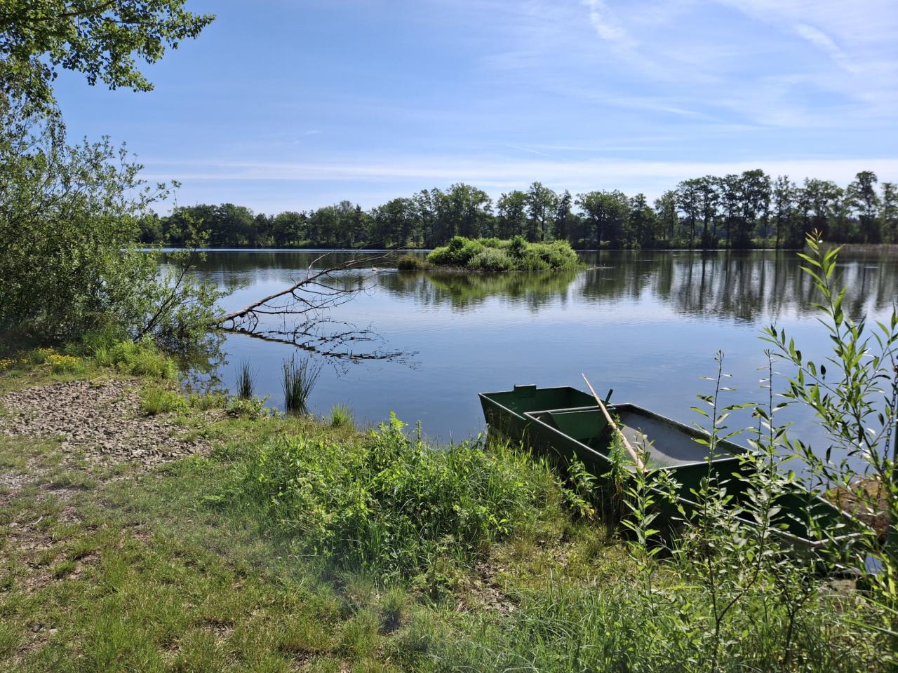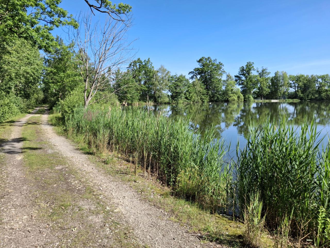 Nadějská rybniční soustava patří mezi nejkrásnější přírodní lokality Třeboňska. Je to soustava 14 menších, větších i velkých rybníků o celkové ploše 240 ha, jejichž základem jsou původní Krčínovy rybníky. Byly napájené stokou zvanou Potěšilka, která byla vedena z řeky Lužnice ještě před stavbou rybníka Rožmberk. Největším rybníkem soustavy je Naděje s rozlohou 66 ha. I další rybníky zde mají romantické názvy: Láska, Víra, Skutek, Dobrá vůle atd. Rybníky jsou rozdělené úzkými nebo širšími hrázemi, po nichž se dá chodit nebo i jezdit na kole. Hráze jsou porostlé starými duby, takže jednak romantika, ale hlavně příjemný stín. Středem mezi rybníky potom vede málo frekventovaná silnice z Klece na Val. Chtěl jsem sem zajet vloni na jaře s cílem vyfotit si nějaké vodní ptáky, jenže přes rozvodněnou Nežárku jsem se nedostal ani v Hamru, ani na Metelu – viz článek ve zpravodaji v květnu 2023. Tak, když jsem se sem nedostal vloni, zkusil jsem to znovu letos. Vyšlo mi to tedy později, ne při hnízdění, ale až v polovině června. Cest, jak se sem dostat, je celá řada, přes Kardašovu Řečici, Cikar a Karštejn nebo přes Dírnou, Pleše a Hamr, s různými variantami, to už ať si každý vybere, každopádně to není daleko, nějakých 25 až 27 km.