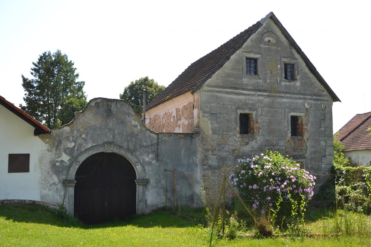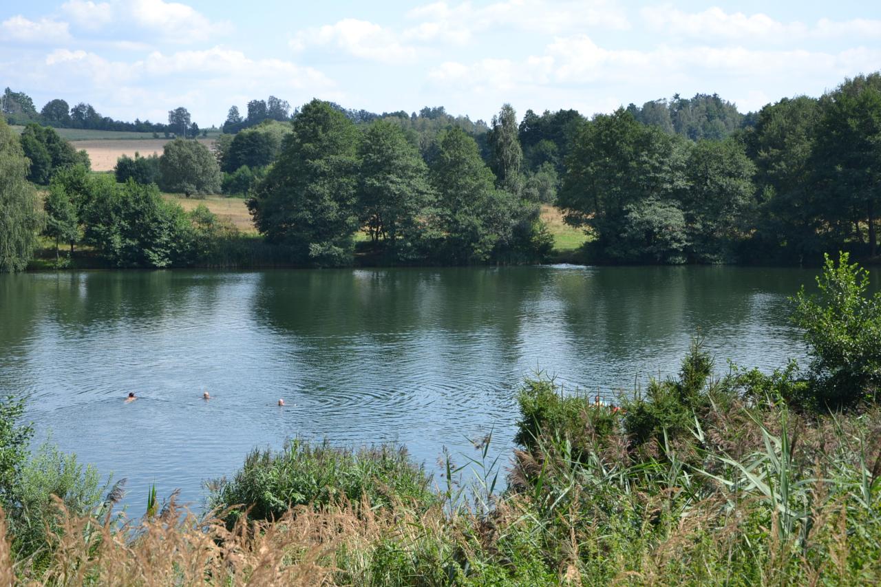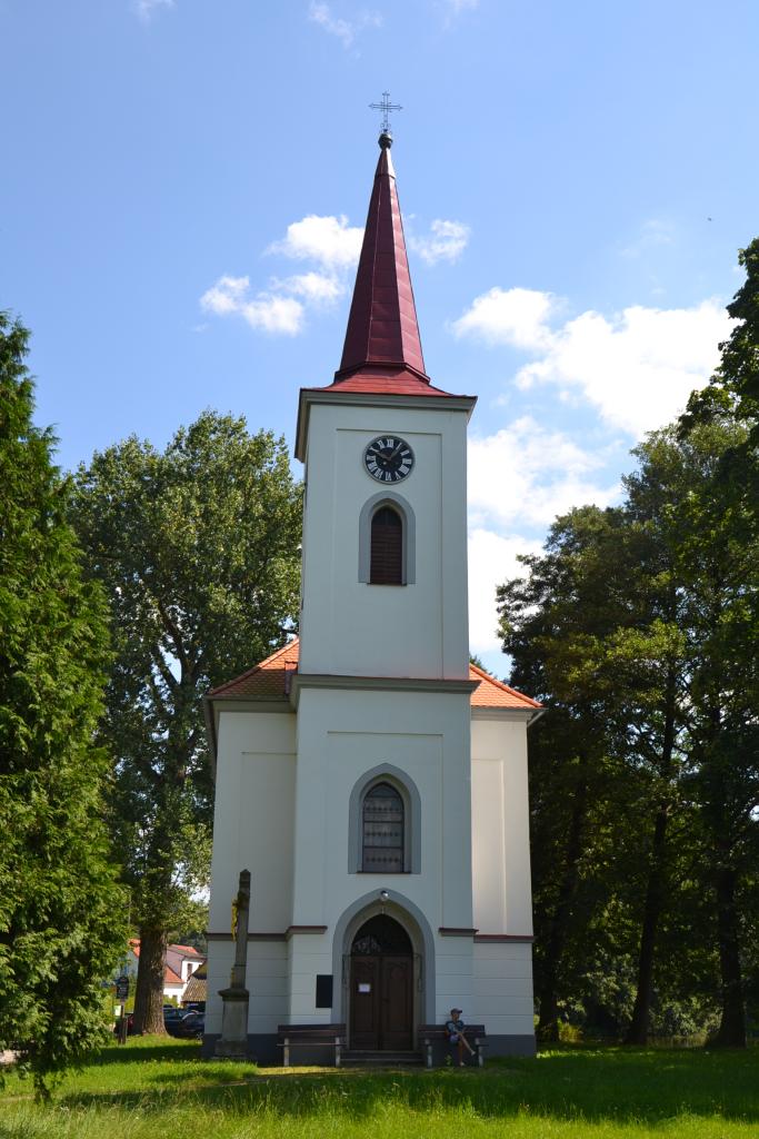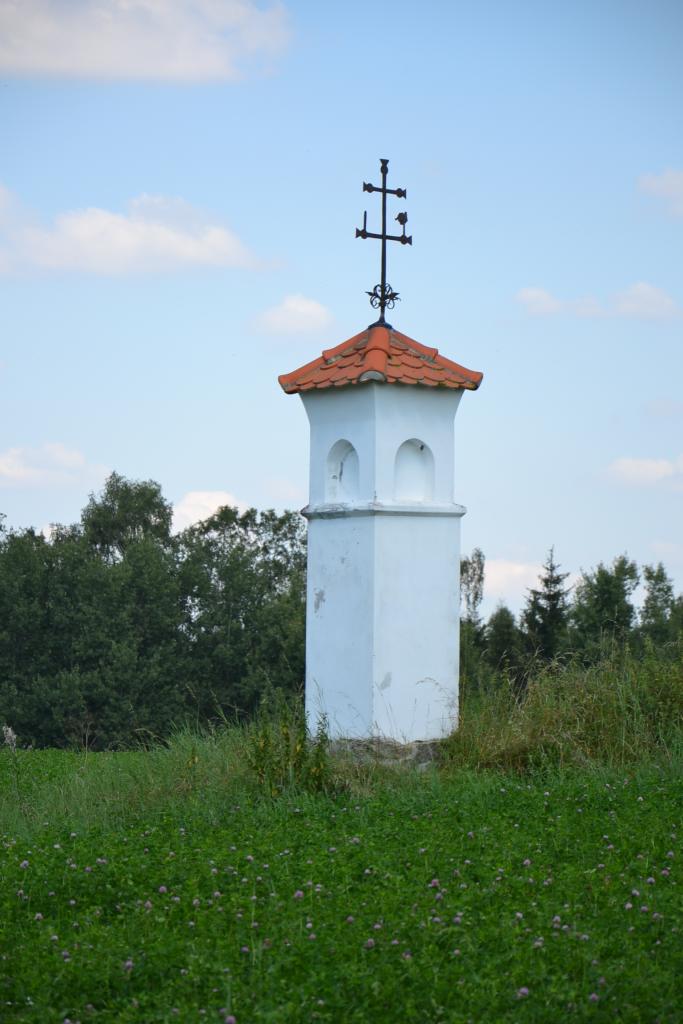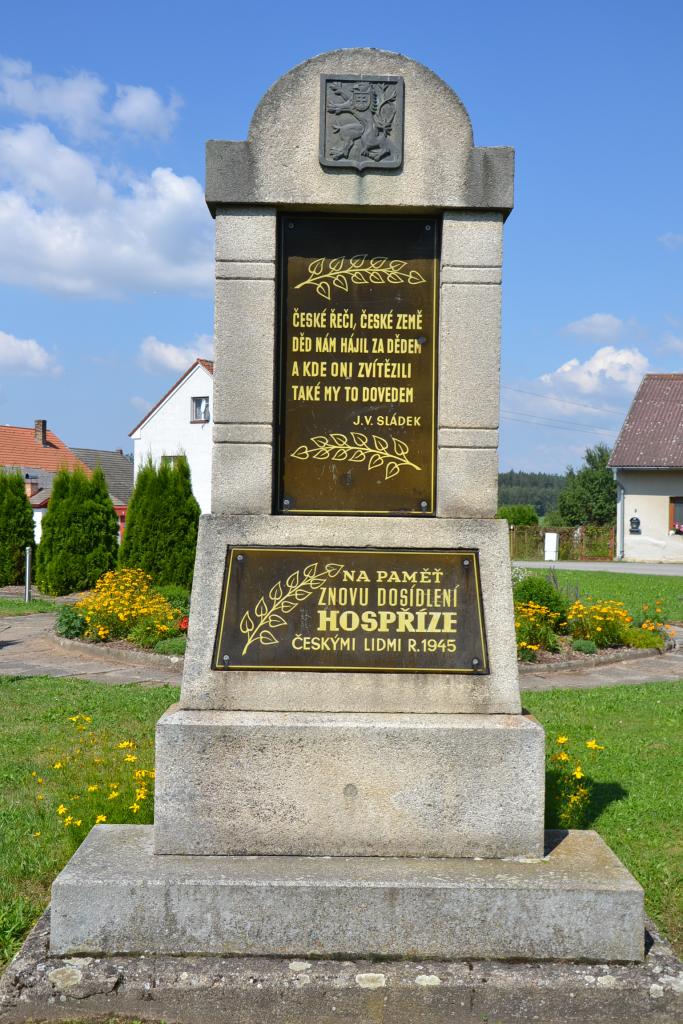 Dále pokračujeme po cyklotrase číslo 1242 kolem rybníka Lihovar až do Hospříze, kde je zajímavý pomník: Na památku znovuosídlení Hospříze českými lidmi. Cyklotrasa vede dále hezkou krajinou do mírného kopce po málo frekventované, dlouho neopravované silnici plné výmolů, až zkřížíme červenou turistickou značku a po ní dojedeme k Ratmírovskému rybníku. Kvalita vody, ani samotný přístup do ní mě však nelákaly a také ani nikdo jiný ve vodě nebyl. Přitom je to zde hodně turistické místo, ale lidé raději vysedávali u svých chat a na terase hospody. Snědl jsem tedy svůj svačinooběd, projel se kolem břehu, u penzionu Ratmírák jsem se otočil a přemýšlel, jak dál, protože po červené značce se cesta zdvíhala přes kořeny stromů do lesa a navíc se jednalo o druhý konec Jindrovy NS a s Jindrou už jsem měl špatné zkušenosti. Tak vyhrála pohodlnost a jel jsem po zbrusu nové asfaltce, dvakrát jsem přejel úzkokolejku a byl jsem v Blažejově.