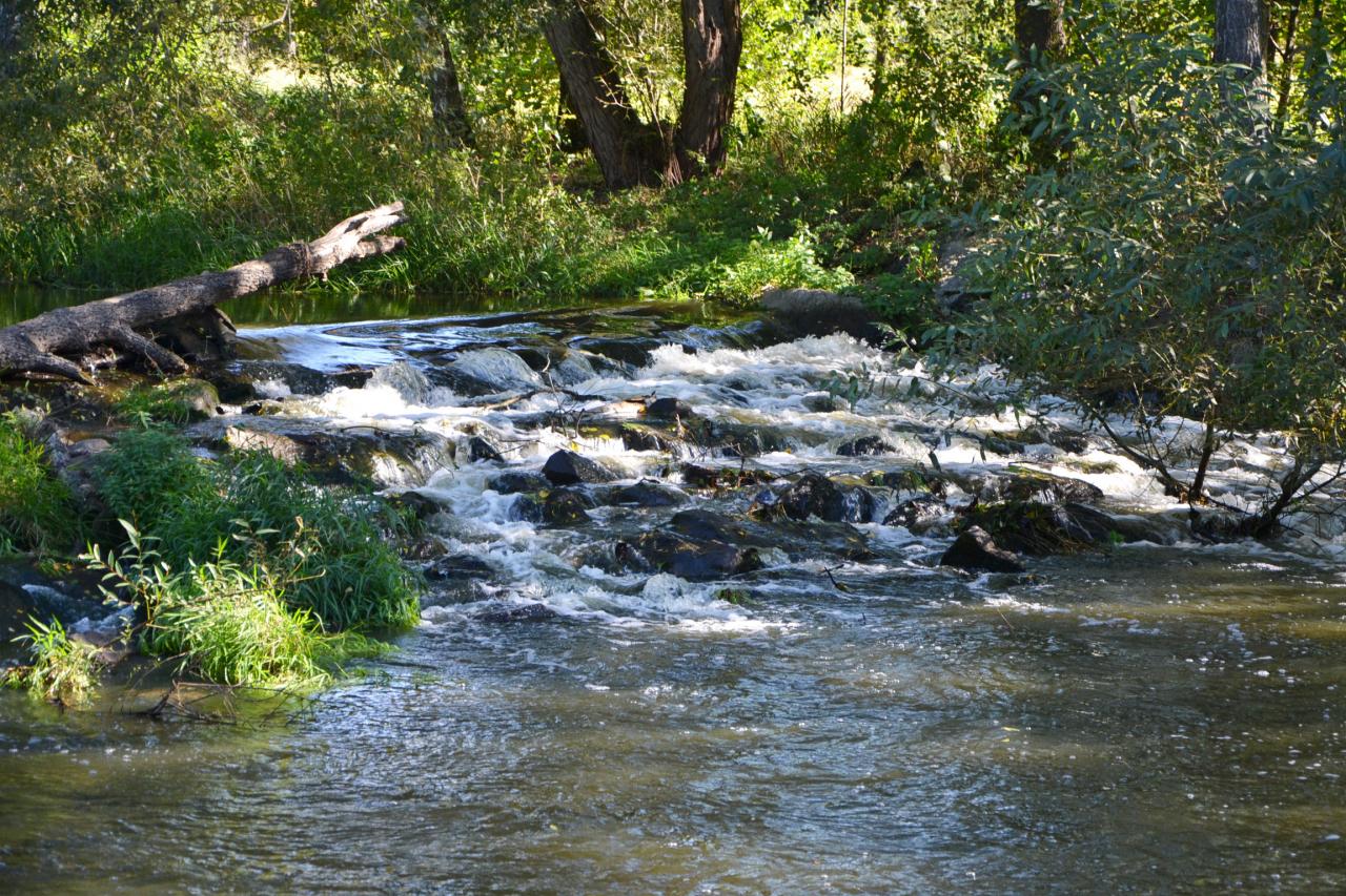 Z Deštné vyšlápneme nepříjemný kopec do Brčíku, potom ovšem sjedeme dolů do Lodhéřova a pokračujeme směrem na Jindřichův Hradec až k odbočce na Drahýšku. V Drahýšce na rozcestí pojedeme doprava po červené turistické značce a hned po 100 m se na první odbočce dáme vlevo a po pěkné polní cestě dojedeme až k rybníku Kropfl, pod kterým potok na skalnatém podkladě tvoří zajímavé peřeje. U rybníka je starý mlýn. Kamenná patrová stavba se zahradou ohrazenou kamennou zdí. Mlýn slouží k rekreačním účelům a prochází rekonstrukcí. Skutečně hezké klidné místo. Po cestě jedeme dále až na silnici Dolní Radouň – Jindřichův Hradec a naší další zastávkou je Dolní Skrýchov, kde jsem musel nejdříve odstranit nějaké výhonky šípkové růže, aby byl vůbec viditelný pomník obětem 1. světové války. Z domů mne zde zaujal nejvíce ten s číslem 28, sloužící  jako penzion. Potom jsem si udělal již jen malou odbočku k vodácky těžko sjízdnému, ale na pohled hezkému jezu Vrzák na řece Nežárce a pokračoval jsem do Horního Skrýchova. Zde je fotograficky vděčným objektem budova čp. 10, statek s modrobílou fasádou a před ním stojící výklenková kaplička ve stejném provedení. Zajímavá je i historická budova hostince U Slámů. Přejedeme koleje jindřichohradecké úzkokolejky a po 400 m odbočíme vlevo na asfaltovou cestu, která je cyklotrasou s názvem „Kolmo kolem lokálky“. A je to skutečně paráda, cesta je téměř dokonale rovná, nejen že na ní nejsou kopce, ale prakticky ani zatáčky. Navíc je zde cestou několik turistických přístřešků, kde je možné příjemně posvačit. Takto v poklidu dojedeme až k hájovně (Lovětín čp. 29), kde cyklotrasa odbočuje vlevo, a když ji posléze opustíme, můžeme dojet po silnici do Kostelní Radouně, nebo to vzít ještě polní cestou kolem dvou samot (čp. 78 a 66 – V Parízu), najet na zelenou značku a do Kostelní Radouně se dostat kolem Černoleského rybníka (doporučuji).