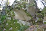 Tak a tady otáčíme a vracíme se zpátky, ale tentokrát ty Radouně projedeme druhou cestou, za humny, kde je celá řada památných stromů, křížků a Božích muk a skončíme zase v Kostelní Radouni, kde se po zelené turistické značce vydáme na Čertův kámen. Jedná se o naučnou stezku, takže se dozvíme nějaké zajímavosti o lesním ekosystému a pro děti jsou zde zastávky s různými sportovišti (houpačky, kladina, lano, skoky atd.), čímž se zřejmě při delším pochodu děti zabaví a omezí se tak otázky typu „kdy už tam budem“. Vystoupáme (nedá se stále jet) až do výše 659 m, pokocháme se zdejším skalnatým vrcholem a vydáme se zpátky přes Lodhéřov do Deštné.