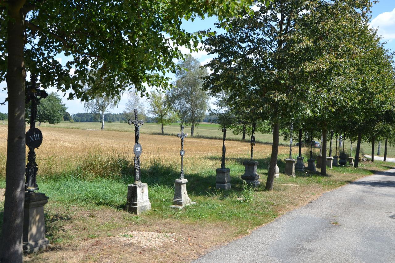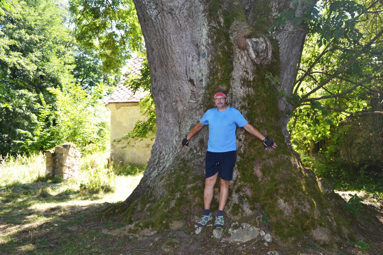 Jednou z největších zajímavostí Strmilova je bezpochyby strmilovské podzemí, což jsou sklepy patřící k bývalému hostinci. Podzemí bylo zpřístupněno v roce 2017, vchází se do něj kaplí Nejsvětější Trojice a klíč od vstupu si lze vyzvednout na městském úřadě. Uvnitř vidíme dřevěné sochy čertů s různými doplňky a k tomu si vyslechneme z reproduktoru několik pověstí o čertovském řádění na Strmilovsku. Každé město, či obec se pyšní svými slavnými rodáky. Ve Strmilově jím je prvorepublikový politik, ministr a starosta František Staněk, který zde má pomník na náměstí a pamětní desku na rodném domě. Pokud vás zastihne čas oběda, tak jedinou a hojně navštěvovanou restaurací na náměstí je hotel Komorník. Poobědvali jsme i my a posilněni pokračovali Kunžateckou ulicí kolem známé pražírny kávy a stále funkční tkalcovny, obojí vlastní Zdeněk Kubák. Vyjedeme na hlavní silnici a dáme se směrem na Studenou, ale hned po 400 m odbočíme vpravo a po sotva znatelné cestičce se dostaneme k přírodnímu bludišti. Nemá tak velkou reklamu jako to v Dolní Pěně, ale přesto si zde na cestičkách mezi 900 stromky sibiřského jilmu můžeme pěkně zabloudit a nakonec nás u jednoho východu čekají Boží muka z roku 1832 s lavičkou nebo u druhého východu polorozbořený vojenský bunkr. Vrátíme se zase na křižovatku, ale místo na Strmilov se dáme kousek opačným směrem, jako na Kunžak a po chvilce odbočíme vpravo a prohlédneme si zajímavou křížovou cestu udělanou sice z „obyčejných“ litinových křížků, ale každý křížek je jiný a místo nápisu oslavujícího Boha, má římskou číslici. Křížky jsou blízko u sebe a dovedou nás ke hřbitovu s kostelem sv. Ondřeje. Po žluté turistické značce pokračujeme dále kolem rozbořeného vojenského bunkru (stejně jako ten u bludiště se ho snažili zničit Němci v roce 1939) a kolem rybníka Hejtman do Budkova, kde si bývalou tvrz soukromý majitel přestavuje na bydlení. Zajímavější však je obrovský památný jasan s obvodem kmene 8,5 m. Zde jsem si ke stromu pro porovnání velikosti stoupnul já. Že je mě docela kus, ale u toho stromu se úplně ztrácím. Kolem rybníka Hejtman se dostaneme až do Střížovic k zámku Rozkoš. Jedná se o hezký zámeček v pseudogotickém stylu, ale je v soukromém vlastnictví a ze všech stran zarostlý, takže je problém ho i vyfotit. Při projíždění vesnicemi Mutyněves a Oldřiš mě zaujaly zejména krásně udržované budovy starých špejcharů. Z Oldřiše polní cestou kolem ohromného solitérního památného dubu, kousek lesem a jsme v Rodvínově. Zde je třeba se zastavit na gáblík a dobrou Plzničku v obecní hospodě a pak už jen Horní Skrýchov, Drahýška, Lodhéřov a jsme doma. Cesta do Strmilova 31 km, zpátky 37 km.