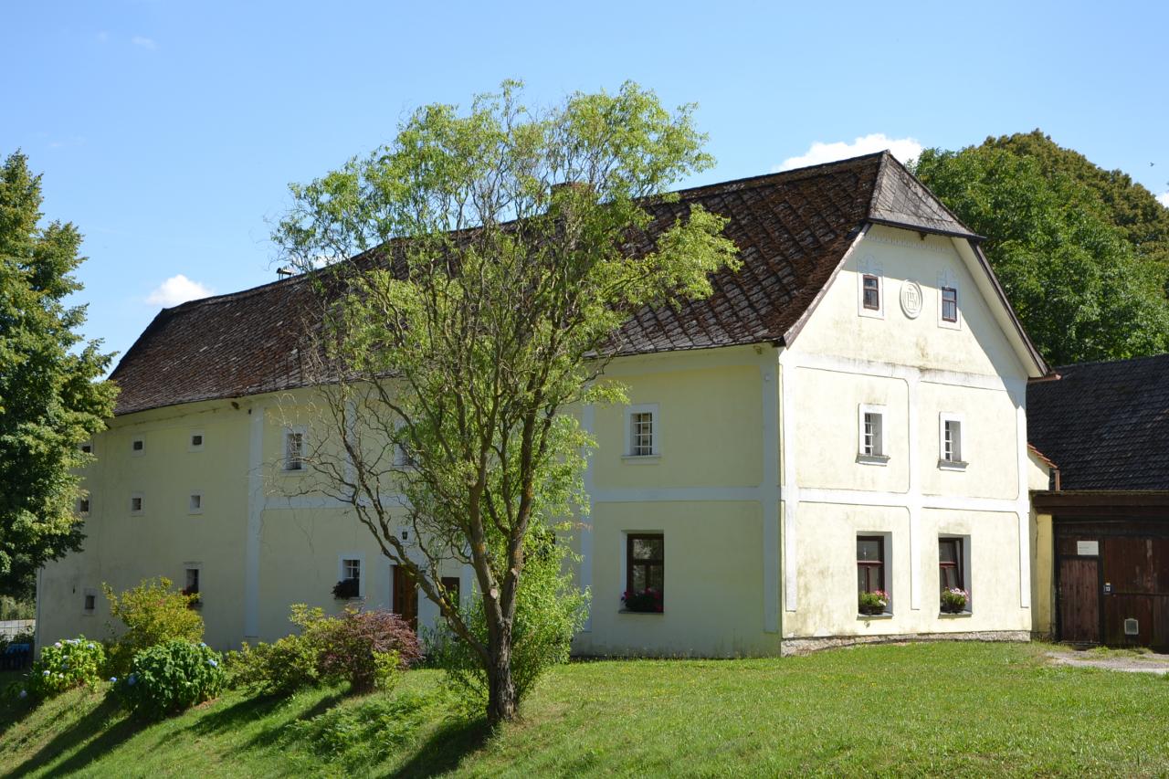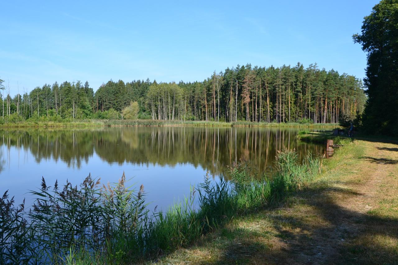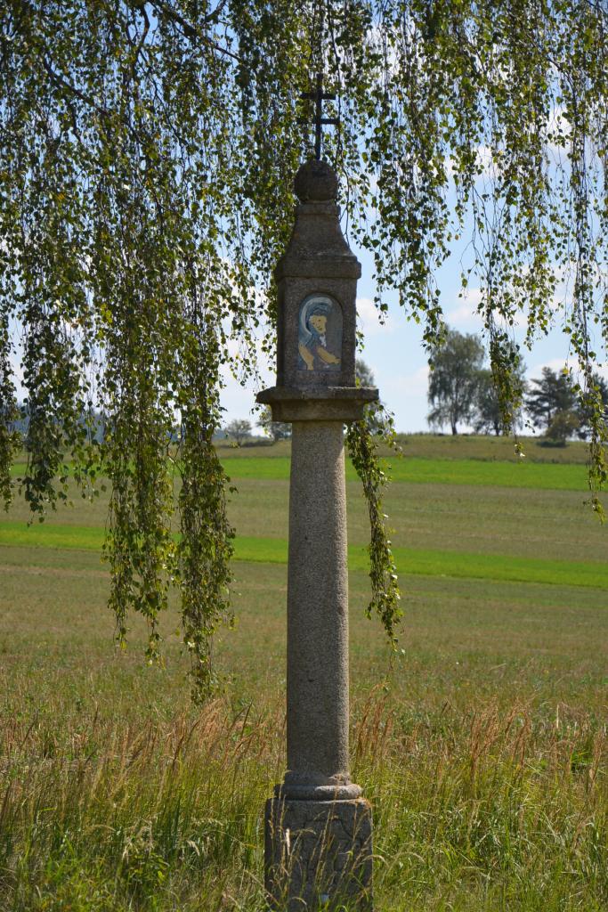 Tentokrát mám pro vás zajímavý výlet, takže konec úvodu a nasedat. Z Deštné pojedeme do Lodhéřova, kde pod kostelem zahneme na červeně značenou turistickou značku, která nás dovede do Dolní Radouně, odkud se přes stejnojmennou železniční zastávku dostaneme do Jarošova nad Nežárkou a Bednárce. Zde se dáme cestou pod kopcem, který se jmenuje Na Babyloně, kolem několika lesních rybníků a rybníčků, z nichž asi nejhezčí se jmenuje Velký obecní. A to už najedeme na zelenou turistickou značku a po příjemné cestě dojedeme až do České Olešné. Cestou mineme obrovský dub, a jelikož jsem s sebou neměl pověstnou krabičku zápalek, tak jsem pro porovnání velikosti postavil vedle něho svoji parťačku na této cestě. Na okraji České Olešné stojí historická zajímavost – hraniční kámen Čechy – Morava. Dominantou vesnice je renesanční zámek, který vystřídal celou škálu majitelů. Nevyhnulo se mu znárodnění a od roku 1951 sloužil jako internát pro ošetřovatelky dojnic, ubytovna lesních dělníků a domov důchodců. V roce 1993 byl zrestituován rodinou Brdlíkových a je uzavřený. A jedeme na Strmilov. Vystoupáme do výšky 603 m, kde stojí poutní kaple Panny Marie a výhled máme až na horu Javořici (837 m).