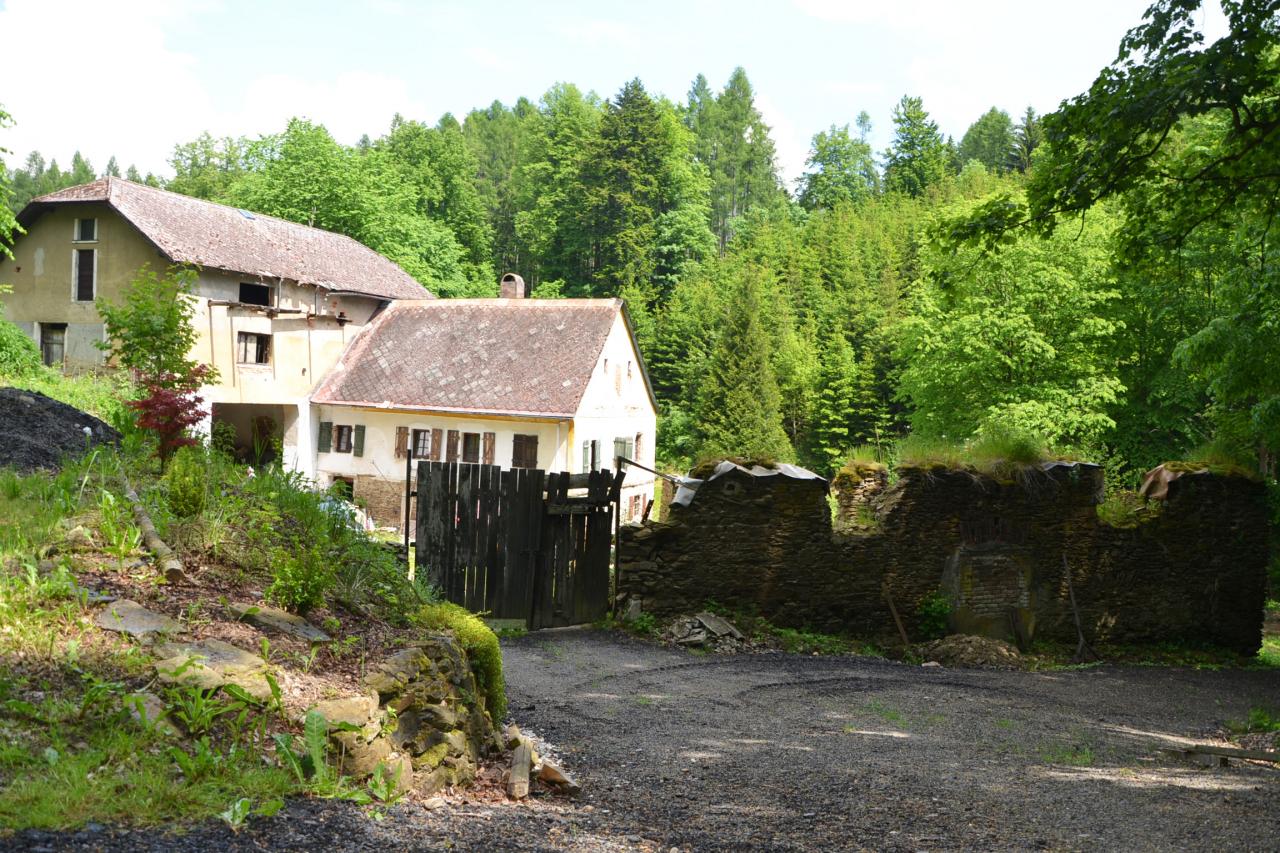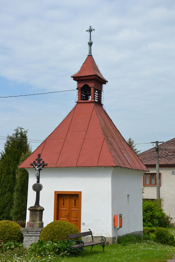 Pokračoval jsem kolem hřbitova, před kterým stojí honosný pomník obětem 1. světové války, pak jsem se ještě podíval, jaké tady mají krásné přírodní koupaliště s nádherně posečeným trávníkem a vedle něho v roce 2010 vybudované arboretum. Dobrý počin. Následoval Bezděčín, kde mi hezká kaplička se zvoničkou posloužila jako úkryt před prudkou přeháňkou. Dále po žluté turistické značce kolem statku se zajímavým historickým názvem Josafat a rozvalinami starých budov až ke zřícenině hradu Údolský hrádek. Sotva jsem však vytáhl fotoaparát, již se ke mně řítil mladý obézní muž s copánkem, kterému přetékalo břicho přes kraťasy a se zalíbením mi sdělil, že je to jeho, a že se tady nic fotit nesmí. Asi byl z těch rozvalin a přilehlého, rovněž chátrajícího mlýna, smutný. Nicméně přemluvit se nedal. Trochu se mi tomu nechtělo věřit po vstřícném přístupu na tvrzi Sudkův Důl. Rozladěnost jsem si srovnal hned v další vesničce Nové Dvory s pěknou zvoničkou a vysokým cihlovým komínem vedle rozvalin jakési budovy. Zbytek návratu již vezmu stručně – Chrbonín, Mlýny, Psárov a přes les po červené značce (kde jsem byl mile překvapený novou asfaltkou) do Březiny a Deštné. No, výlet podle mapy 60 km, já se všemi zajížďkami o něco více.