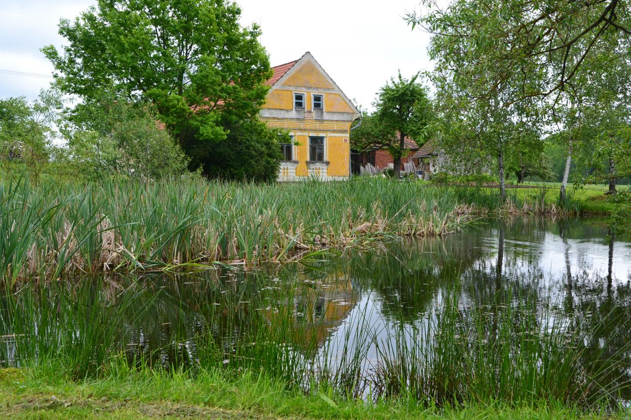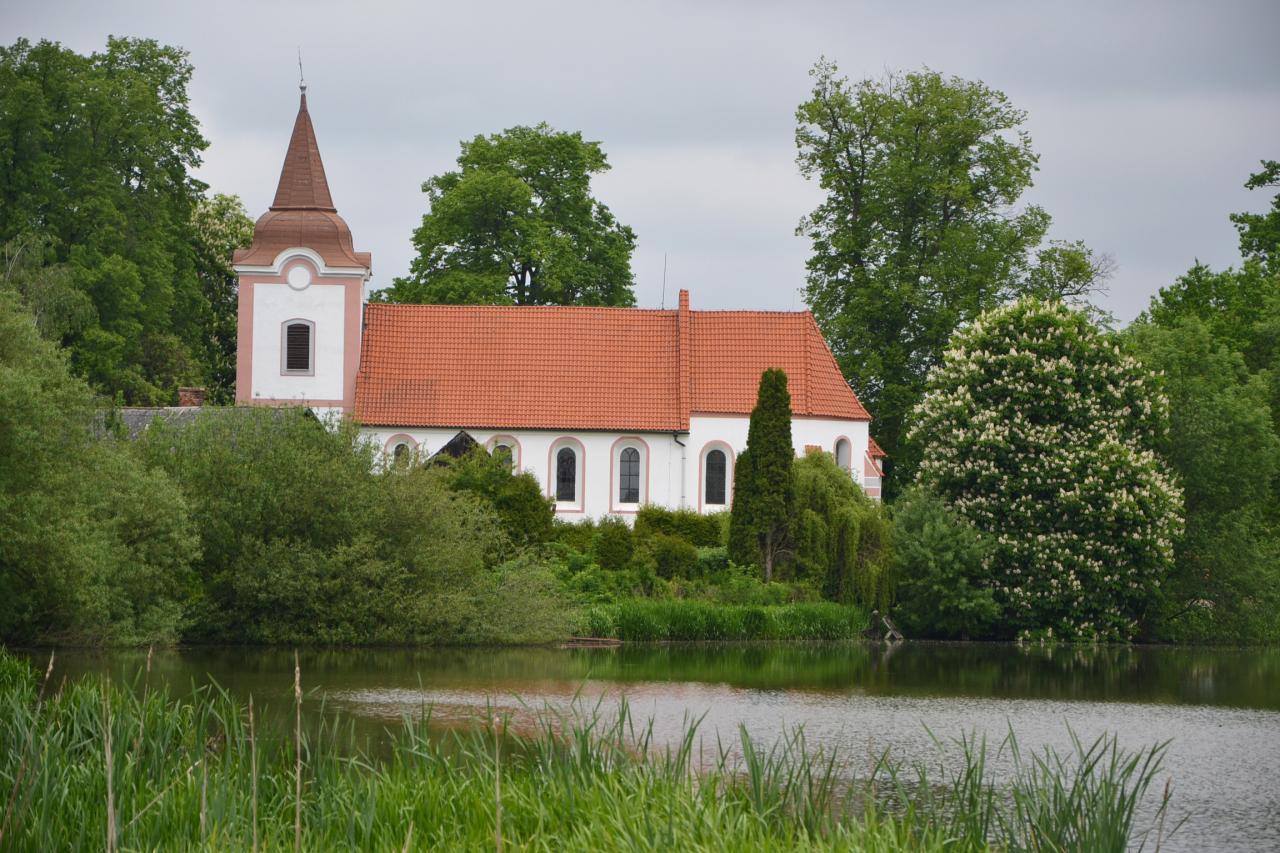 Sviny nejsou sice vesnickou památkovou rezervací jako některé okolní vsi Soběslavsko – veselských blat, ale ta krásná stavení typického selského baroka jsou zde rovněž jedno vedle druhého, takže člověk nestačí fotit. Další bezesporu zajímavé vesnice Borkovice, Mažice a Zálší jsem již popisoval v dřívějším článku, takže jsem se zastavil jen na okraji Borkovic, kde mne zaujal litinový křížek, zarostlý v kopřivách, naklánějící se do příšerně zarostlého rybníka, plného žabího skřehotání. Pak už jsem jen přemýšlel, co je lepší, jestli ta lautr rovina, kterou jsem právě projížděl, kde se sice člověk moc nenadře, ale musí šlapat pořád, nebo ten kraj u nás, kdy sice musí člověk zabrat do kopce, ale pak si zase za odměnu z kopce nějakou chvíli pohoví. Takto jsem dojel pořád po rovině téměř do Hartmanic, které přeci jen jsou trochu na vršku. Hartmanice mě přímo okouzlily. Krásná vesnička, návesní rybník, odrážející barevné fasády domů, pěkně udržovaná kaple, velikostí spíše kostelík, dalších několik kapliček s otevřeným výklenkem nebo s okýnkem na kličku a všude spousta laviček, vybízejících k posezení, protože je zde úžasný klid. Žádná auta, ani lidé, občas jen nesměle někde štěkl pes nebo opatrně potichu zakdákala slepice. Na kopečku krásně opravená hospoda s grilem, venkovním posezením a dětským hřištěm. Prostě idylka.
