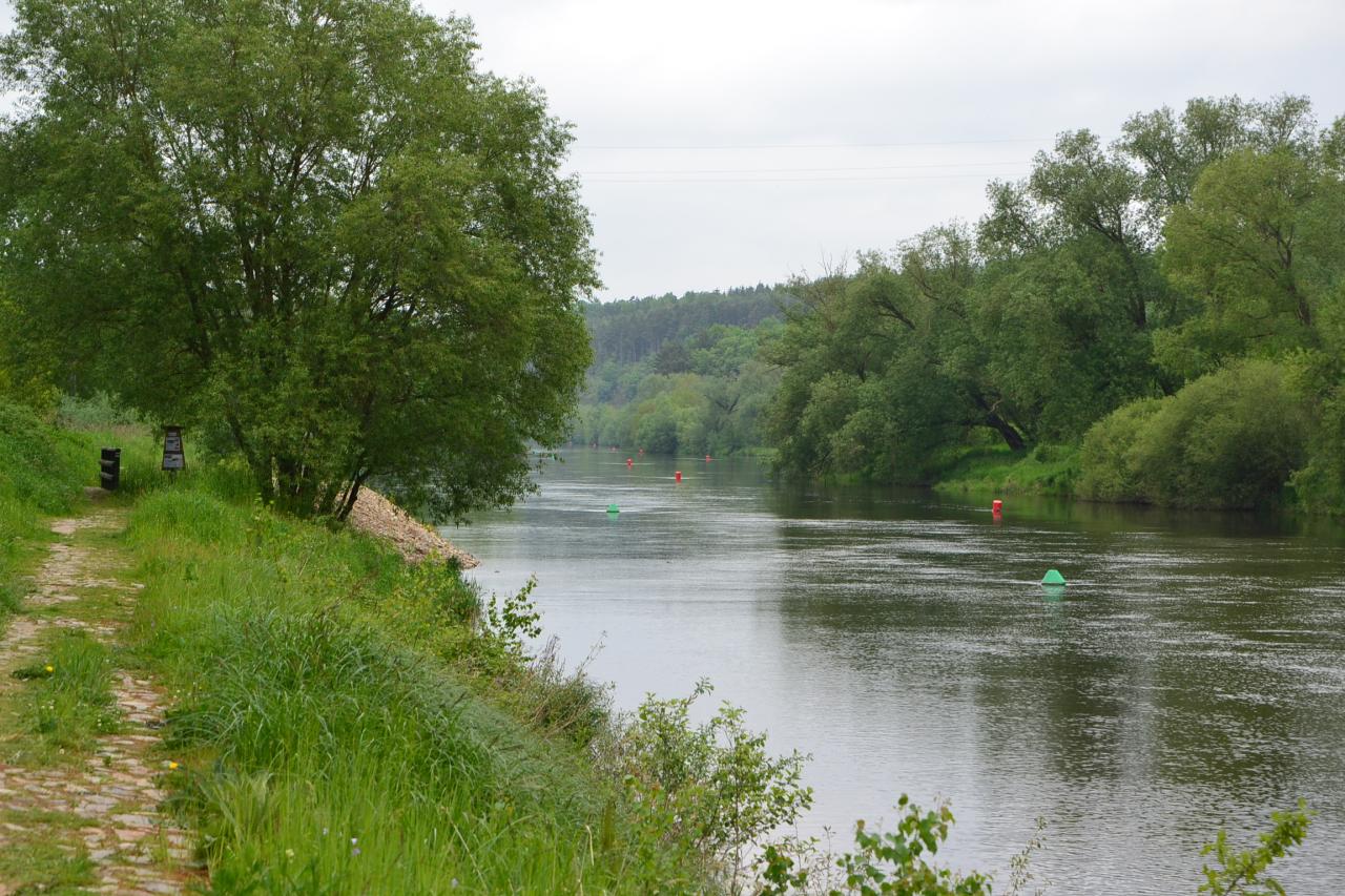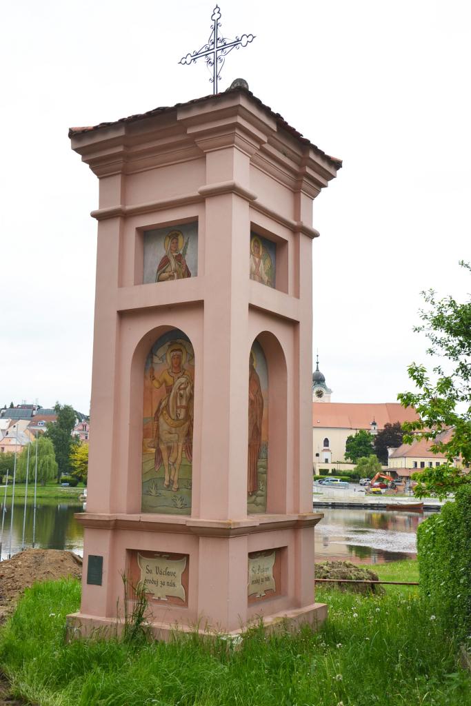 Další zastávku jsem udělal v osadě Korákov, kde jsou tři nádherné památné duby. Zub času už jejich kmeny o obvodu 6 – 7 m trochu vykotlal, ale to jim nic neubralo na jejich majestátnosti. Projel jsem malinkou vesničkou Hrušov a byl jsem v Žimuticích. Hezký kostel sv. Martina na břehu rybníka, vedle ruina jakéhosi kdysi rozhodně hezkého statku, budova výkupu, připomínající rovněž ruinu, avšak překvapilo mě, že ještě funguje, ale i zajímavý pomník obětem 1. světové války. V Dolních Kněžekladech jsou dva památné jírovce. Jsou tak blízko sebe, že tvoří prakticky jednu korunu. Opodál je na malém plácku pamětní deska a zajímavý pomník Františkovi Srncovi, padlému v roce 1915 ve Slovinsku. V Horních Kněžekladech na lavičce u pomníku Mistra Jana Husa byl akorát tak čas poobědvat řízek z domova. Potom následoval dlouhý sjezd k Vltavě do Hněvkovic, kde je velký areál SOŠ a SOU, ale také jez a u něho mlýn, ve kterém je provozováno rodinné mlynářské muzeum. Na fasádě mlýna je vidět ve výšce okna v 1. patře značka, kam až sahala voda při povodni v roce 2002. Týn nad Vltavou je odtud již téměř na dohled, ale já jsem jel opačným směrem a přes 191 m dlouhou a 27 m vysokou hráz vodní nádrže Hněvkovice jsem přejel na druhý břeh a pokračoval kolem řeky po tzv. Potahové stezce, což je naučná stezka, na které je možné se seznámit s řemesly a životem kolem řeky. Stezka je obnovená do původní podoby, tedy včetně staré kamenné dlažby, po které koně vlekly lodě proti proudu. Nakonec jsem se dodrncal až do Týna nad Vltavou, kde jsem v Žižkově ulici minul krásná malovaná Boží muka, přejel po železném mostě z roku 1892 a byl jsem v centru a současně v cíli. Přede mnou stál hotel U Zlaté lodi. Tak se rychle ubytovat, trochu po těch 65 km zkulturnit a vyrazit na prohlídku města. O tom ale až příště.