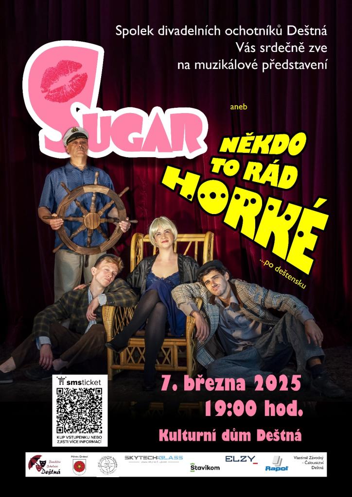 Vstupenky zde: https://www.smsticket.cz/vstupenky/53372-sugar-aneb-nekdo-to-rad-horke-divadlo-kulturni-dum-destna?utm_medium=anchor
