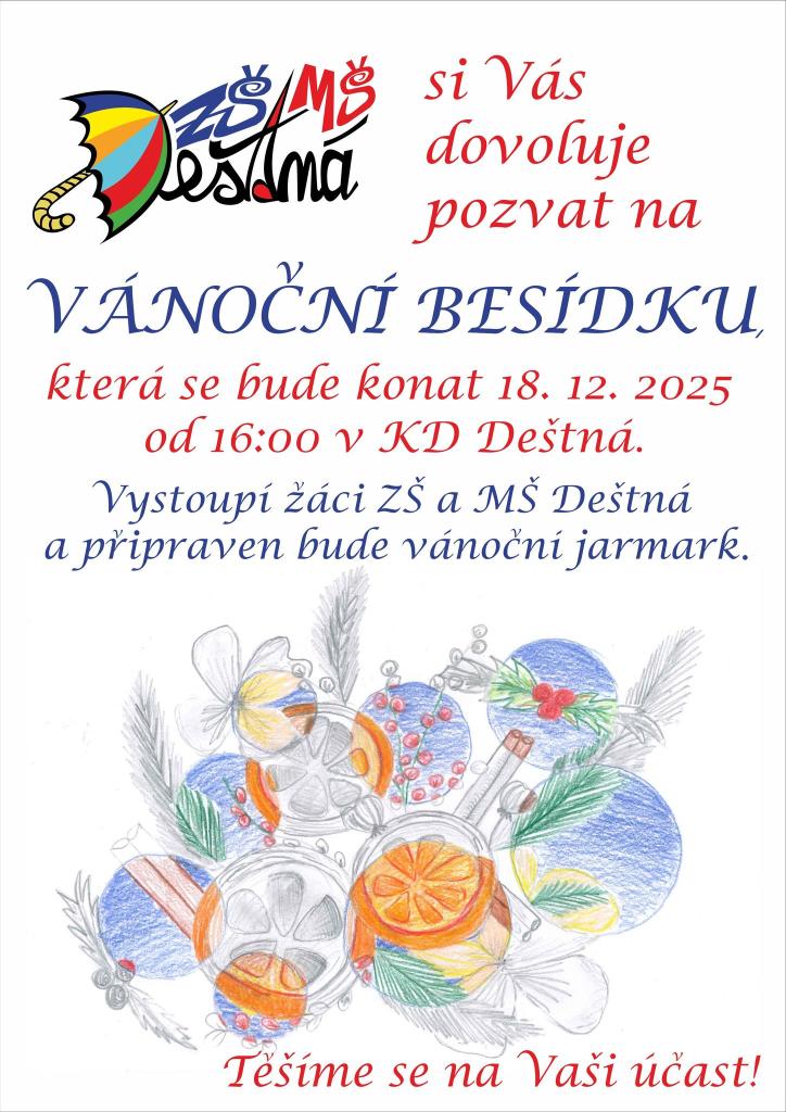 Vánoční besídka pro rodiny s dětmi připravená žáky ŽS a MŠ Deštná